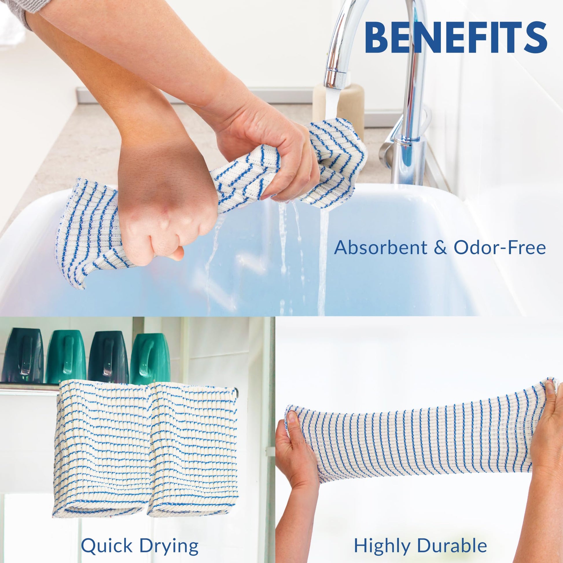 - Absorbent, Quick-Drying & No Odor: The soft waffle texture of this dishcloth set will not scratch or damage any surfaces. Their light layers and double-knit design absorbs more moisture than regular kitchen towels and dries very quickly, preventing musty washcloth odor.