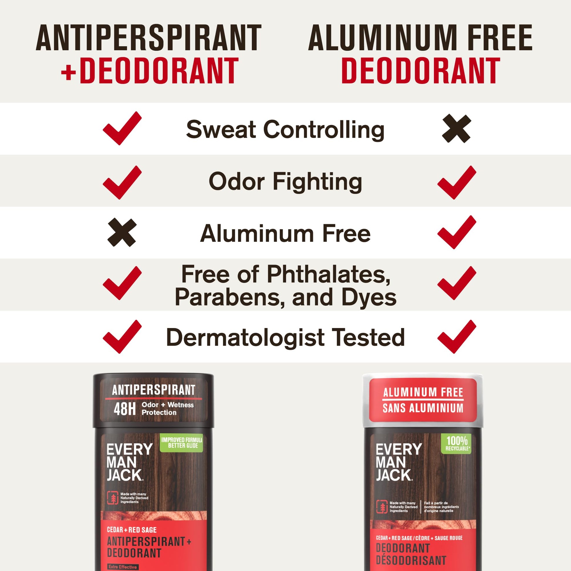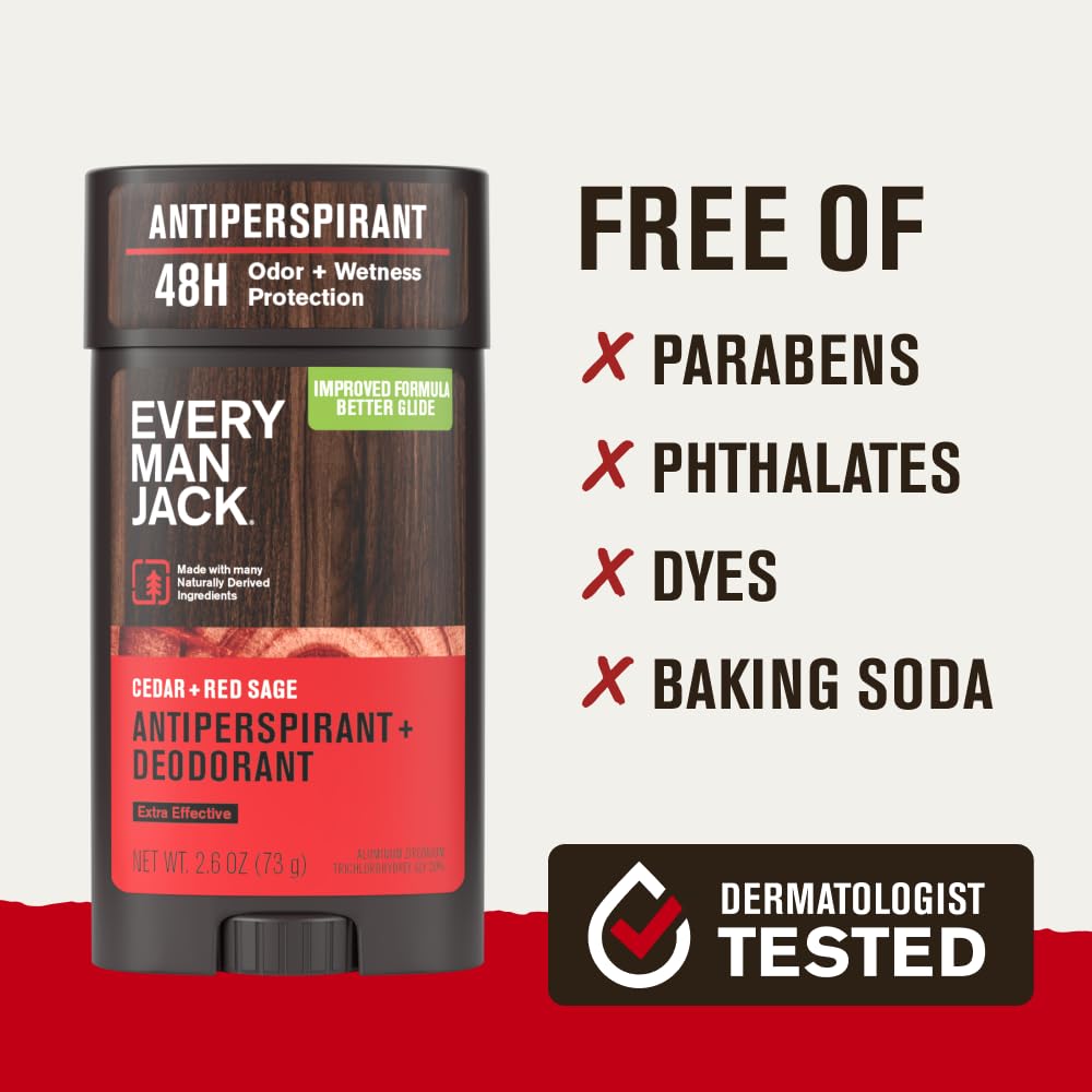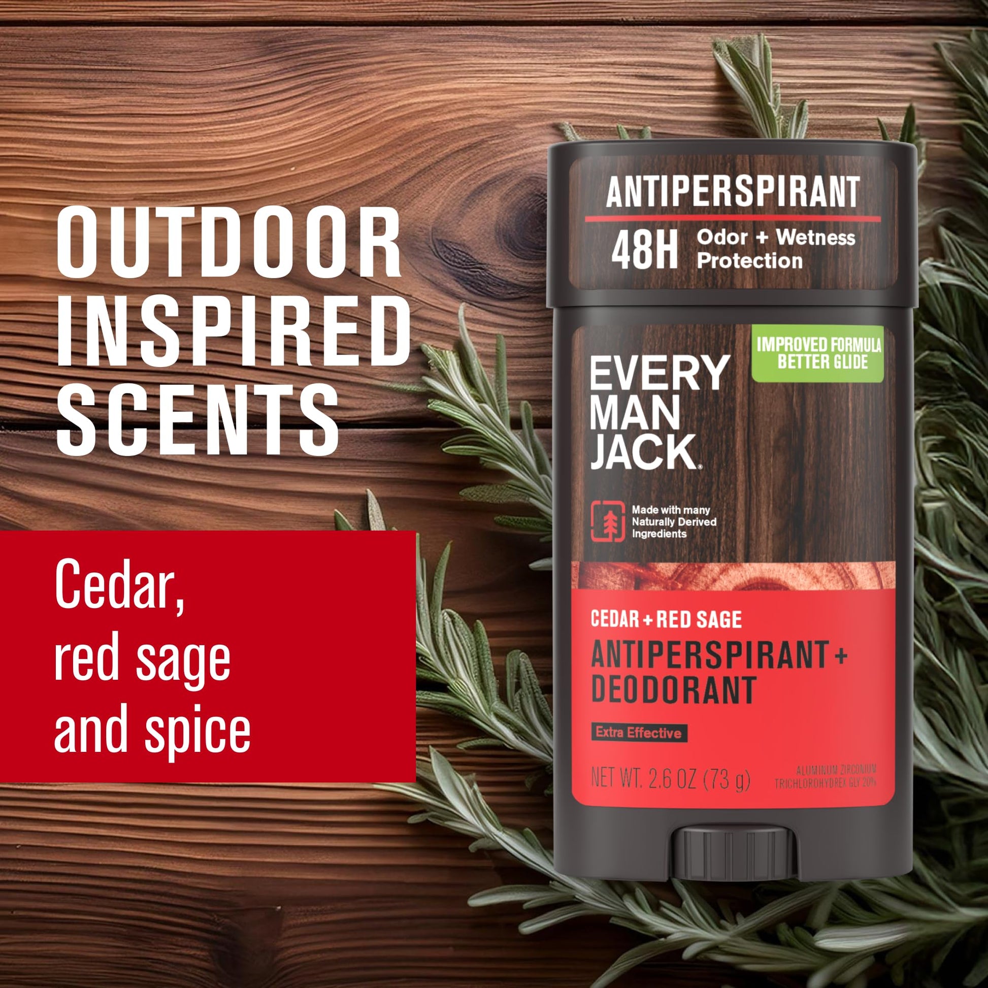 Every Man Jack Men’s Cedar + Red Sage Antiperspirant Deodorant – New & Improved Formula – Smooth Glide, 48-Hour Odor & Sweat Defense– 2.6 oz (2 Pack)