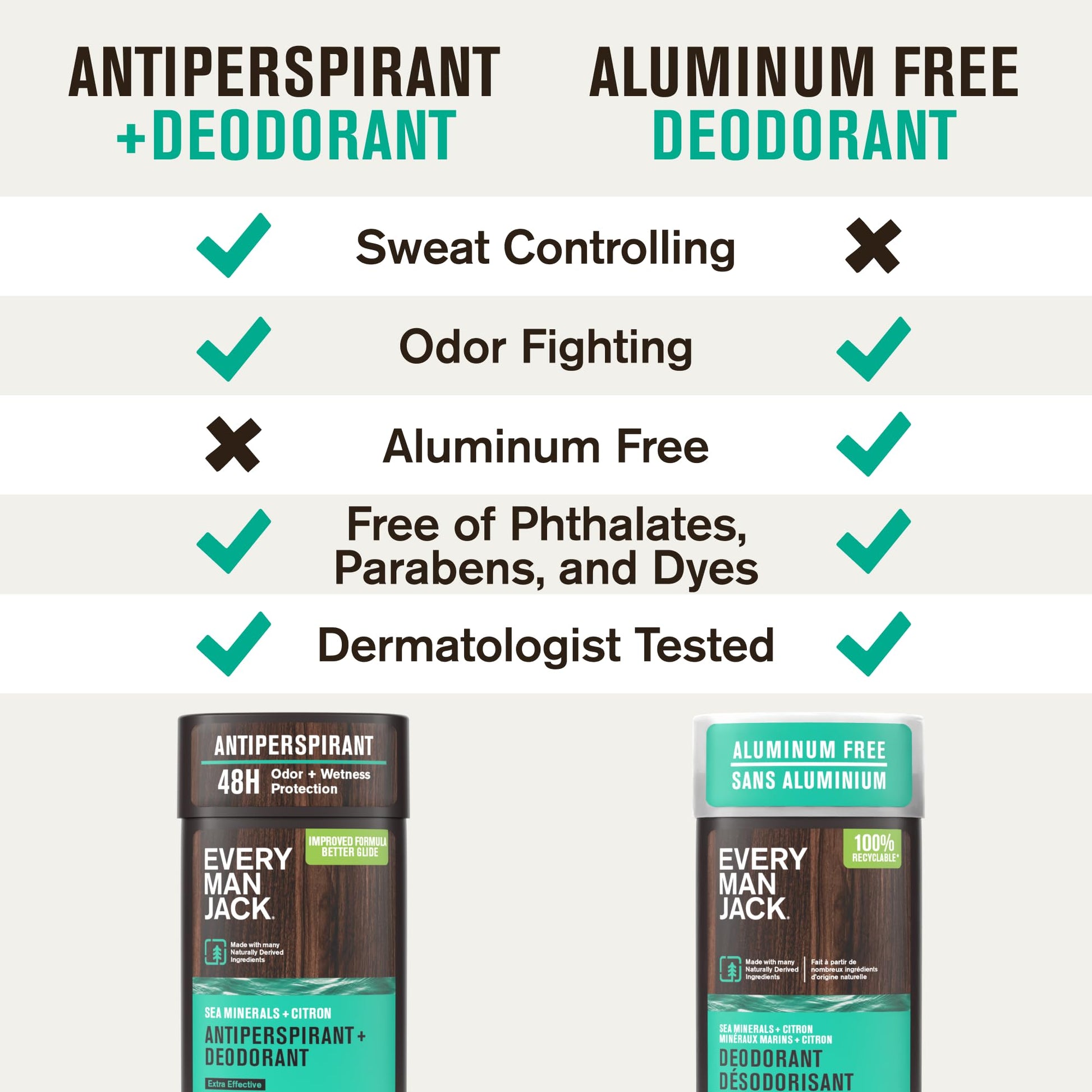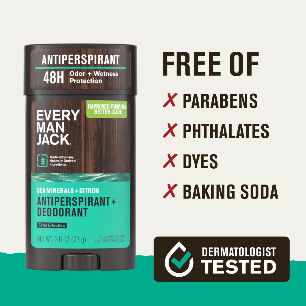 Every Man Jack Men’s Sea Minerals + Citron Antiperspirant Deodorant – New & Improved Formula – Smooth Glide, 48-Hour Odor & Sweat Defense– 2.6 oz (2 Pack)