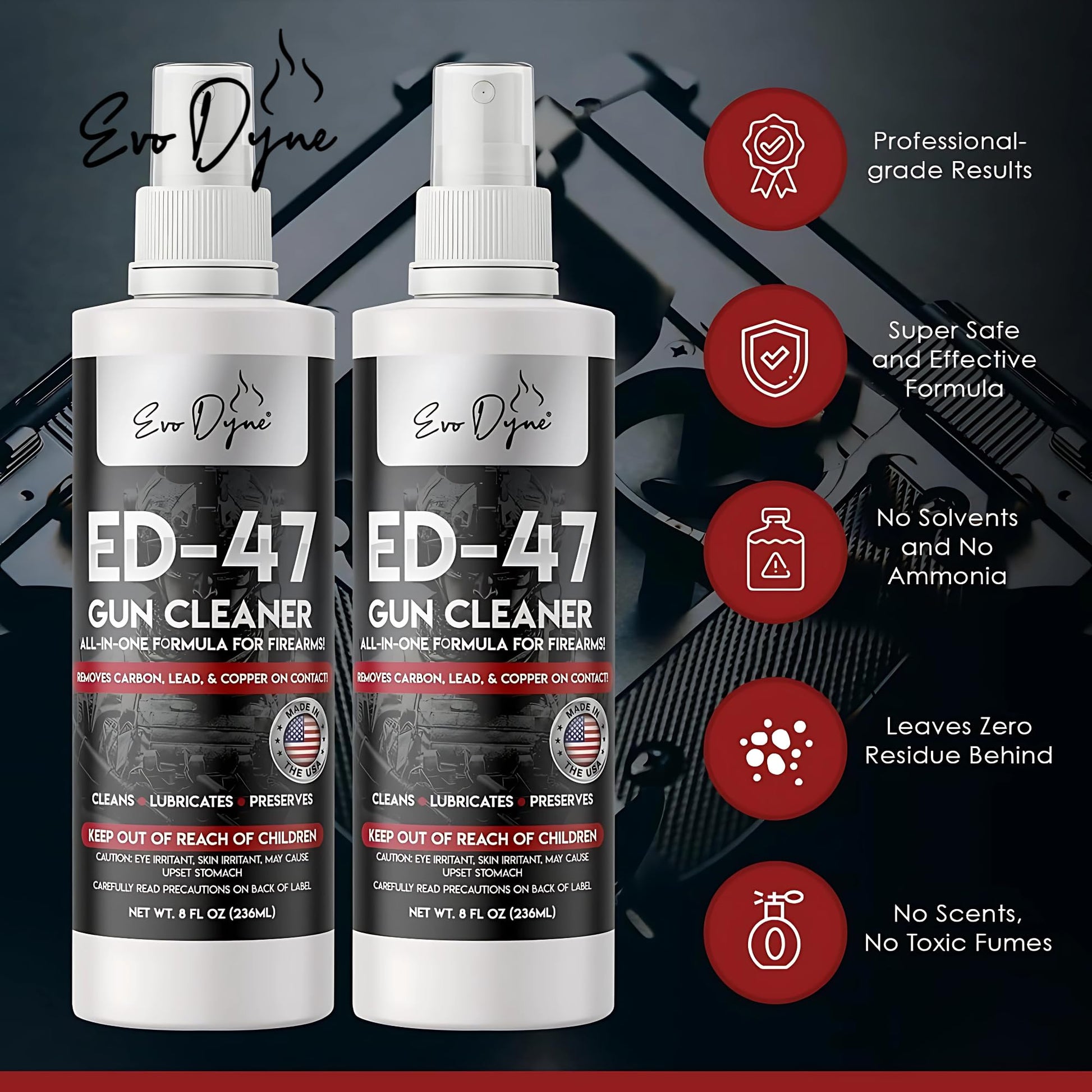 Evo Dyne 2-Pack Gun Cleaner Spray (8oz Per Bottle), Made in USA | All-in-One Lubricant & Gun Cleaner - Penetrates Carbon Deposits, Metals & Residue