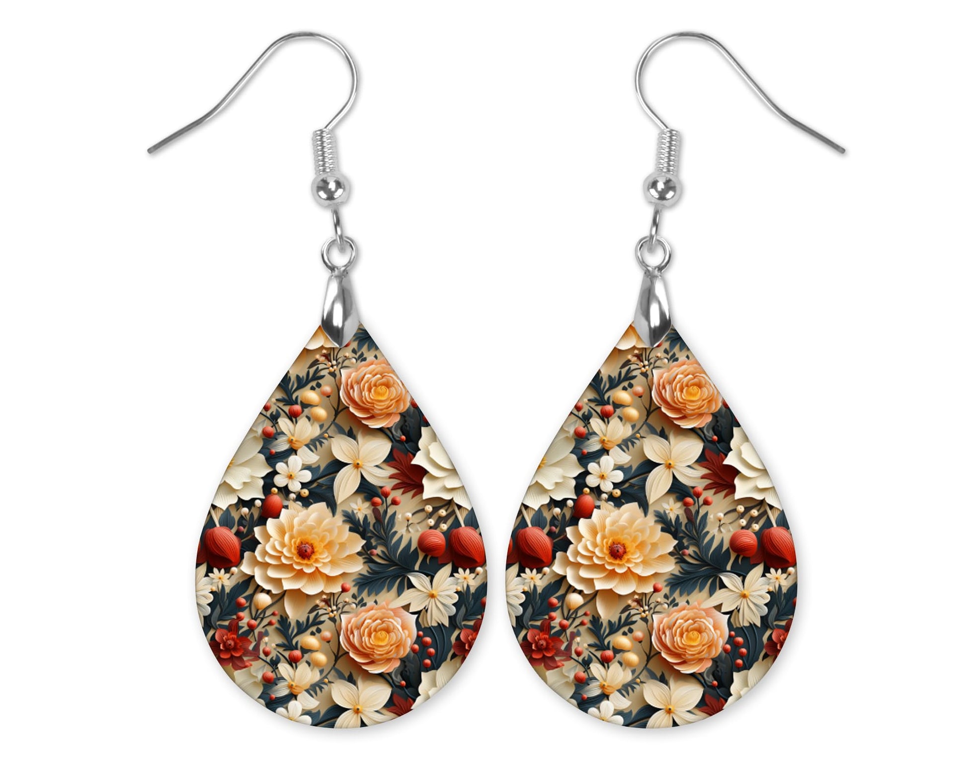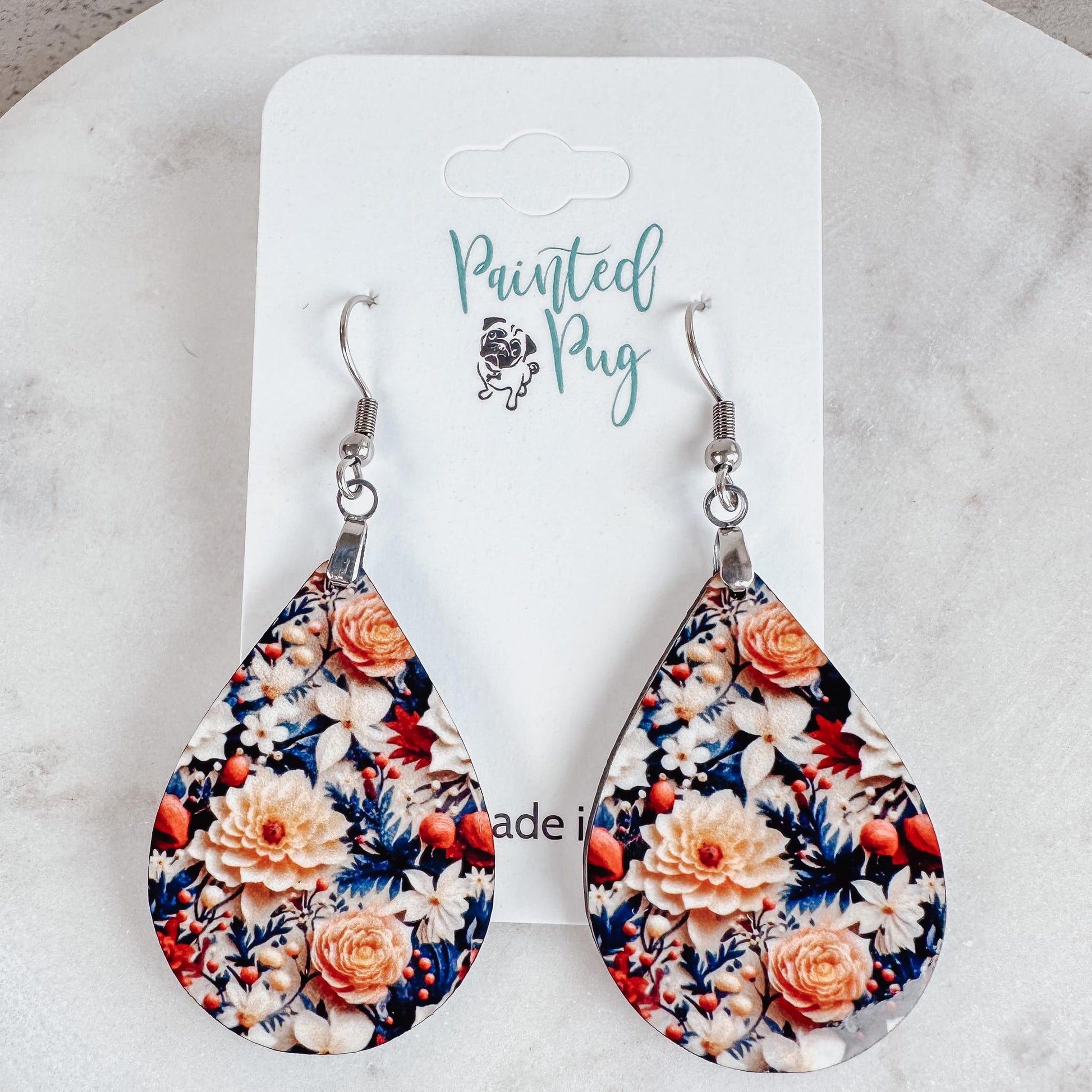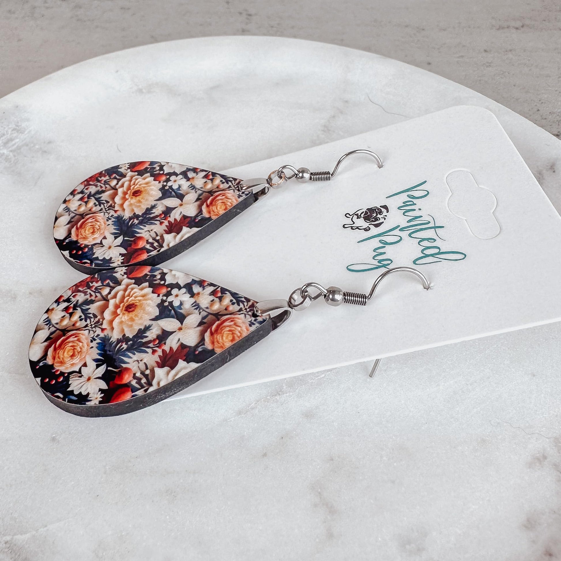 Fall Earrings for Women Autumn Lightweight Teardrop Dangle Fun Colorful Statement Jewelry Handmade by the Painted Pug (Fall Floral Dahlia)