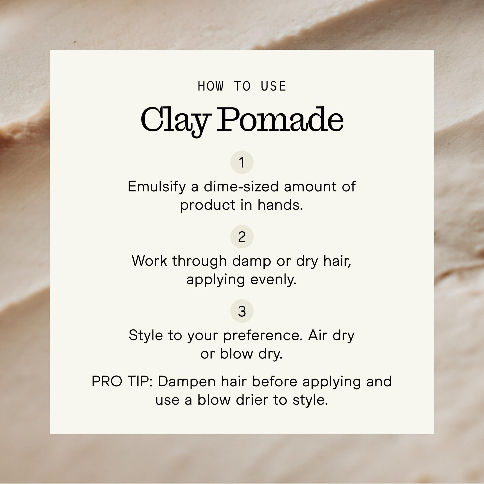 - SMOOTH APPLICATION WITH EASY RESTYLING: Creamy styling clay texture spreads effortlessly through hair without tugging. Scoop a dime-sized amount, emulsify and apply evenly through damp or dry hair. Suitable for all hair types and daily grooming use.