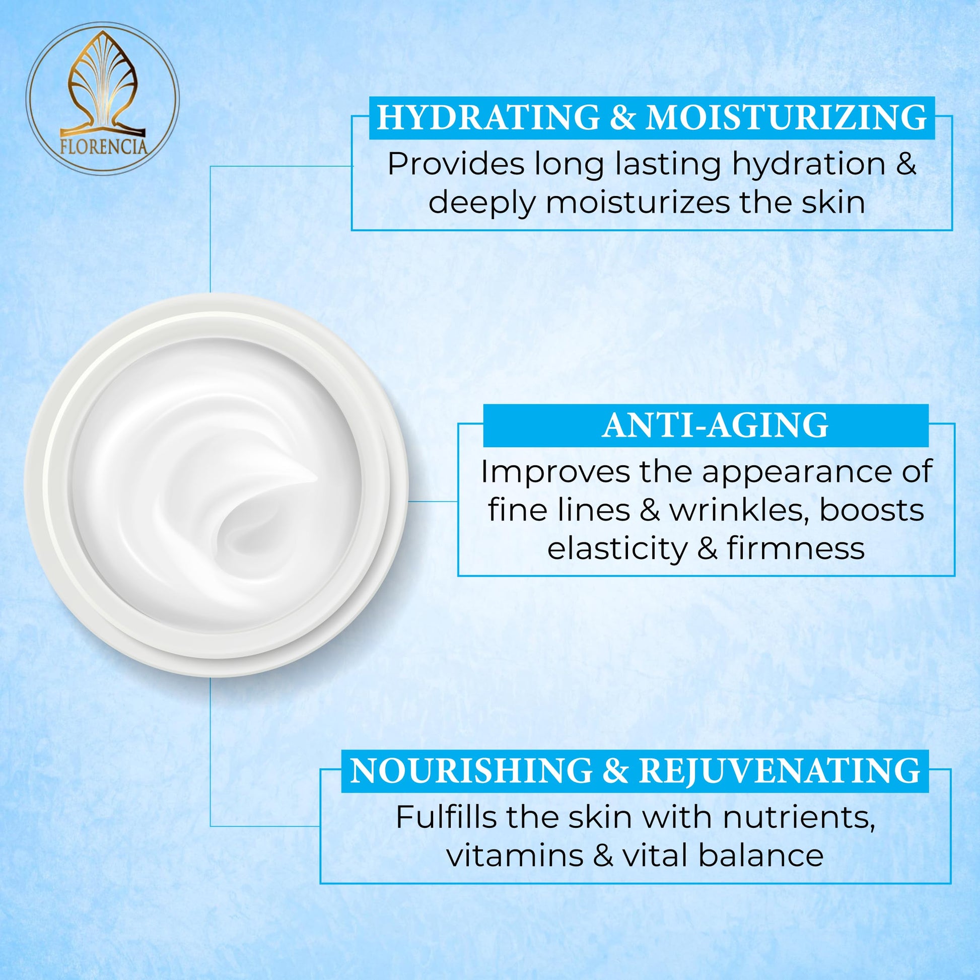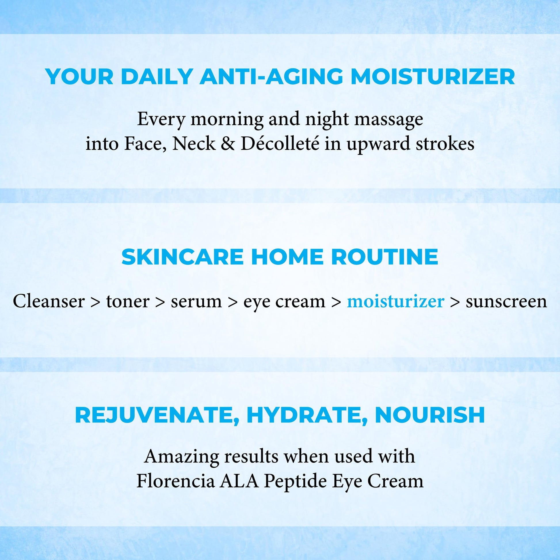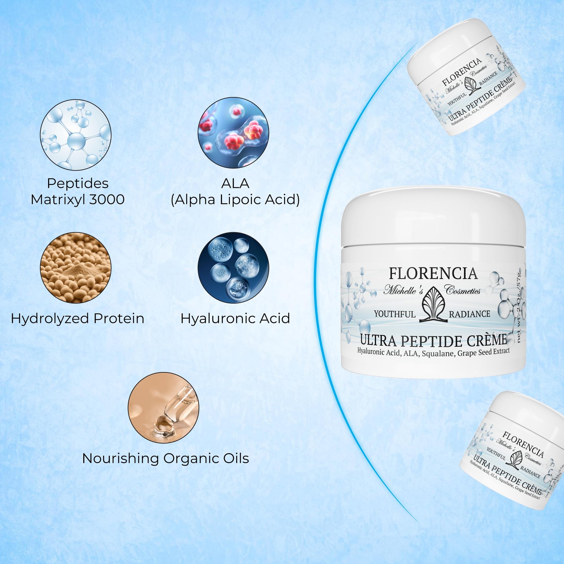 Florencia Ultra Peptide Cream - Nourishing, Organic Face Moisturizer with Hyaluronic Acid & Matrixyl 3000 - Hydrates, Rejuvenates, Firms, Improves Fine Lines - Natural & Vegan, 2 oz