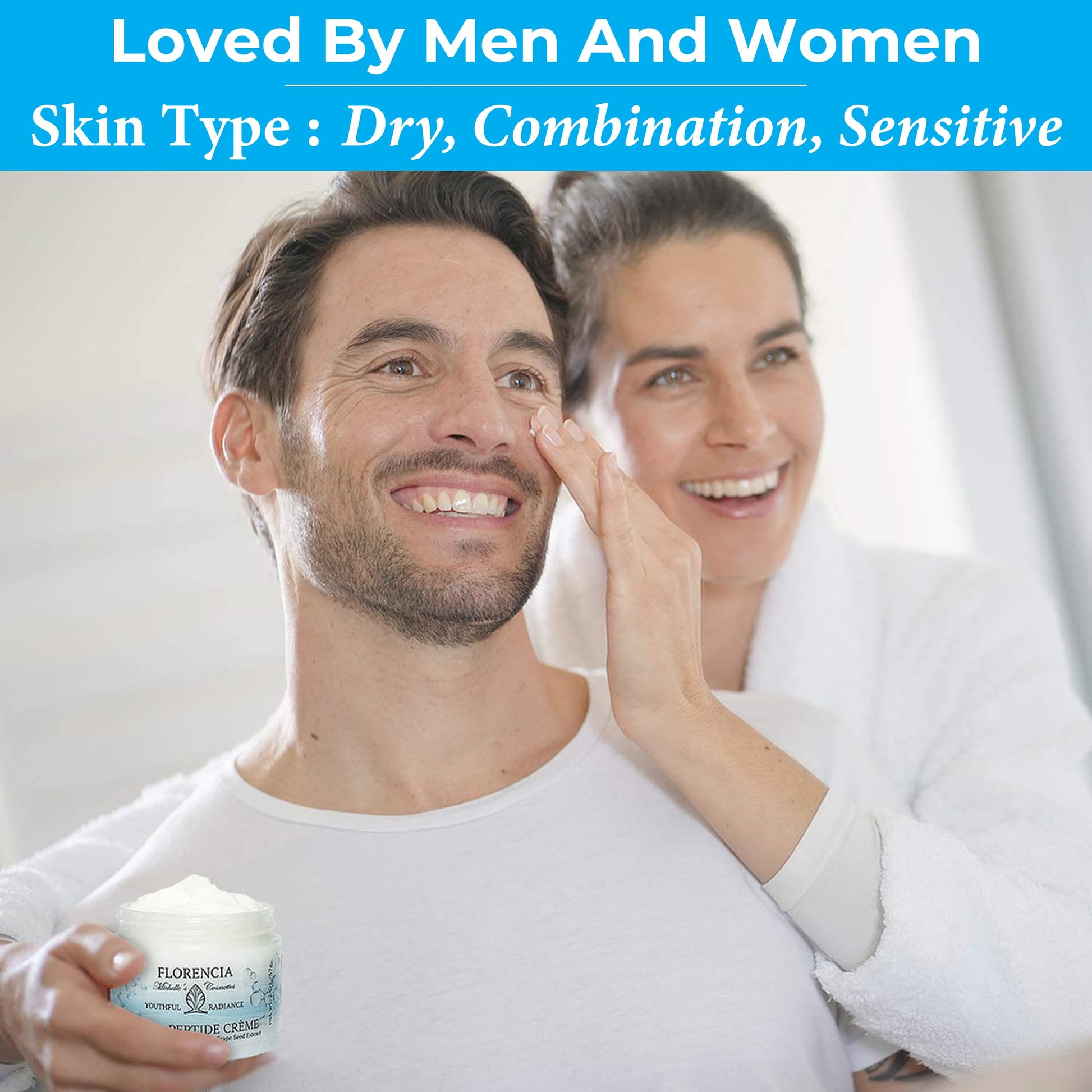 - ONE POT ANTI AGING WONDER FOR Face, Neck & Décolleté - Our gentle yet very effective facial peptide moisturizer is ideal for anyone looking to add nourishment and moisture to their routine. Great for Dehydrated, Dry, Normal types of skin, loved by Men and Women. Our wrinkle cream can be used as an anti-aging daily moisturizer, night cream, or day cream.