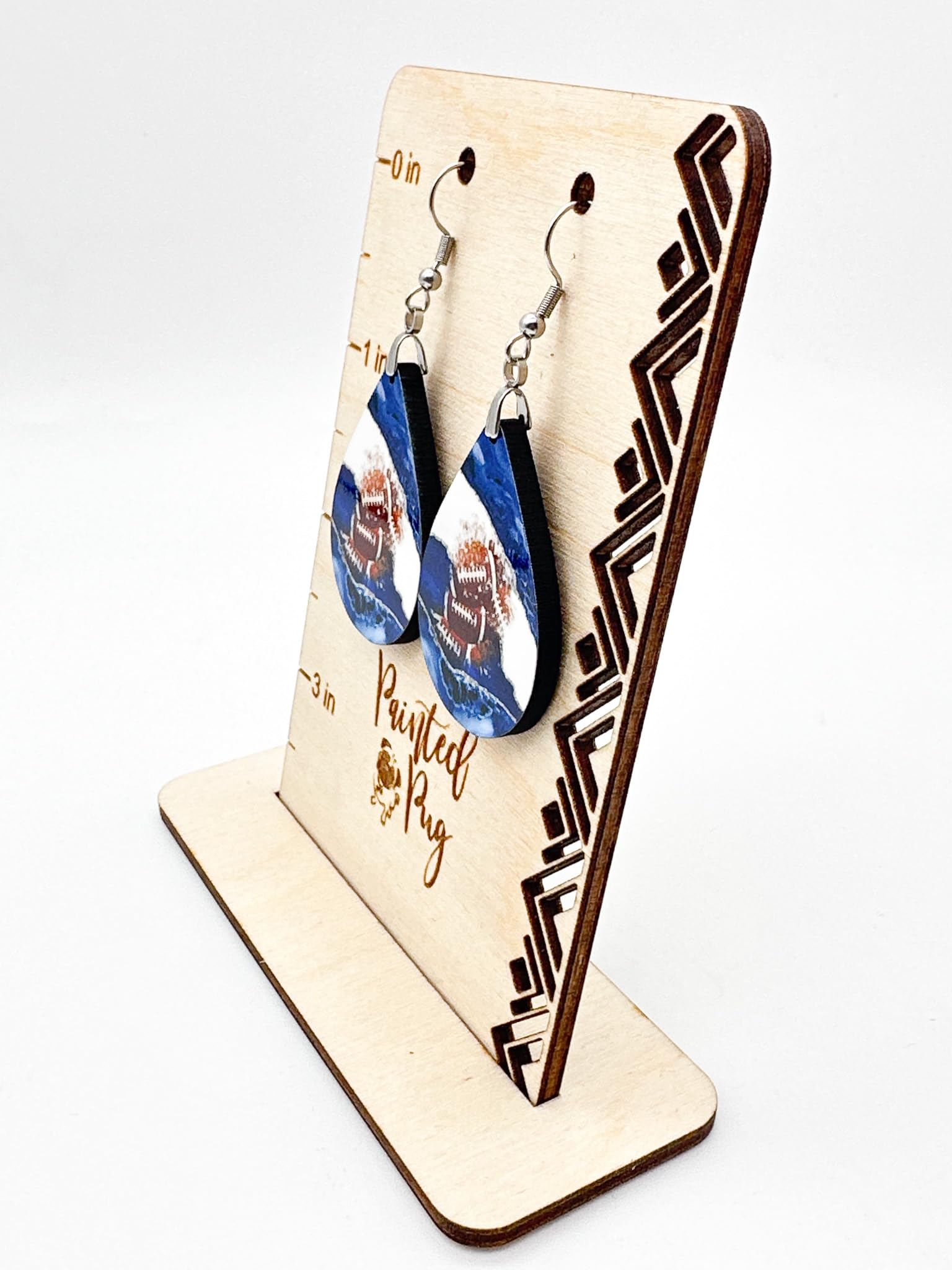 - The classy football earring design is only printed on one side of the wood material. The back is plain brown. The earrings are made with a unique engineered wood that has a glossy surface and wood backing. Each teardrop is cut to precision and the image is directly printed on the front glossy surface. The edge has a nice charred finished. No cork, cardboard, glitter, vinyl or stickers are used in our production.