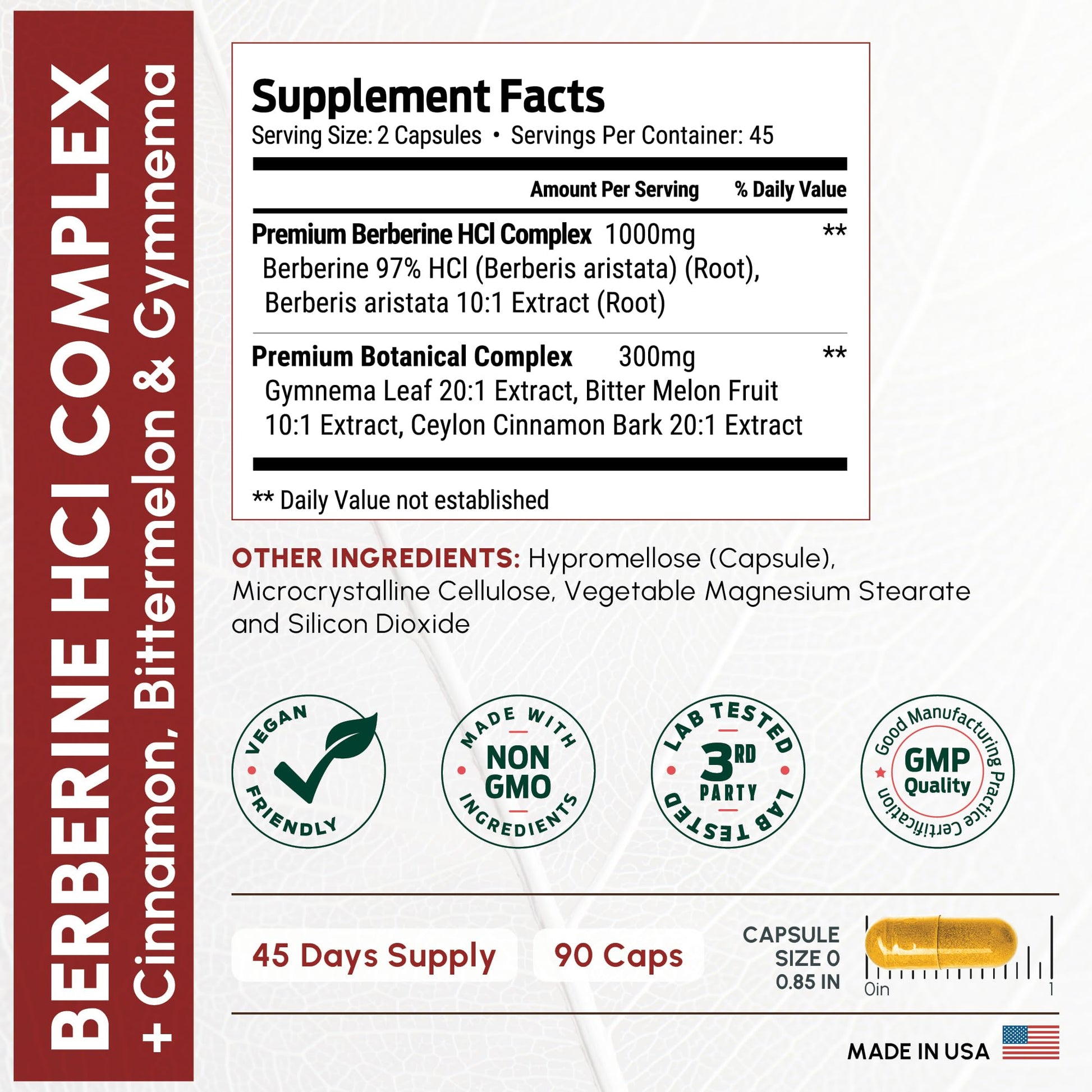 - WITH CEYLON CINNAMON & MORE - Our berberine hydrochloride supplement also includes ceylon cinnamon, bitter melon, and gymnema for additional botanical support. These plant-based, herbal ingredients are included to support the benefits of berberine.
