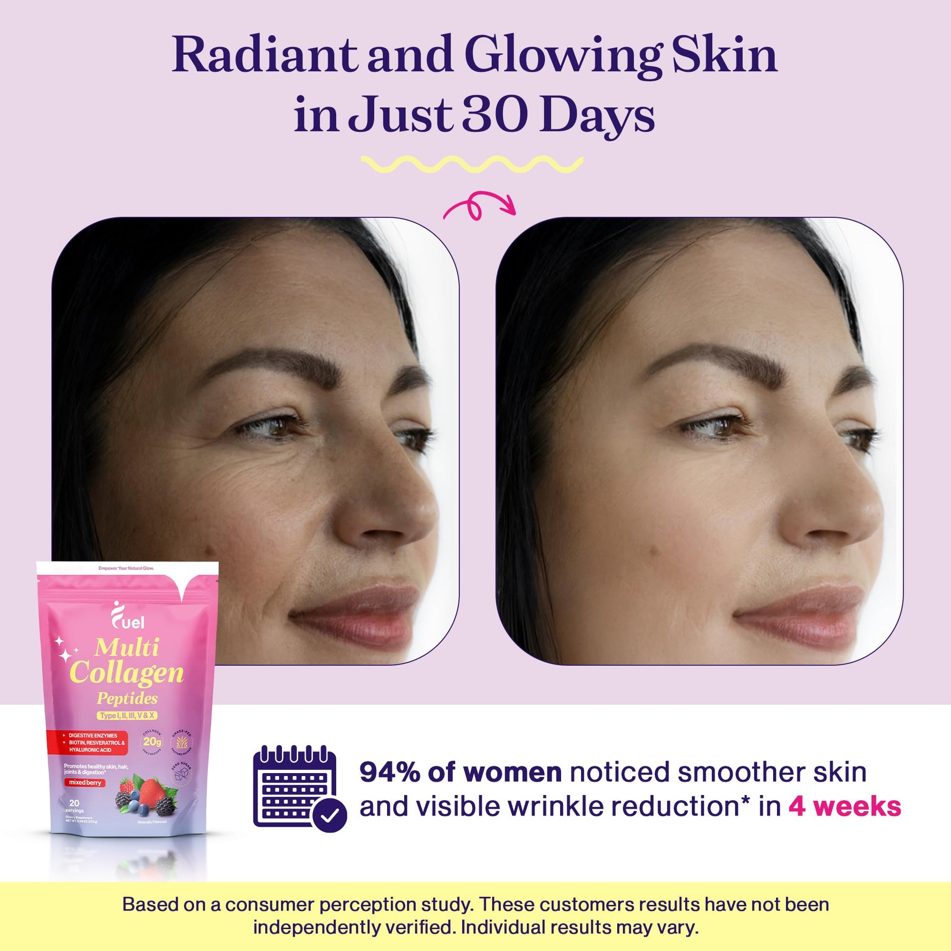 Fuel Multi Collagen Peptides Powder – 20g Hydrolyzed Collagen I, II, III, V & X for Hair, Skin, Nails & Joint Support – Better Absorption – Keto & Gluten Free, Mixed Berry, 9.59oz