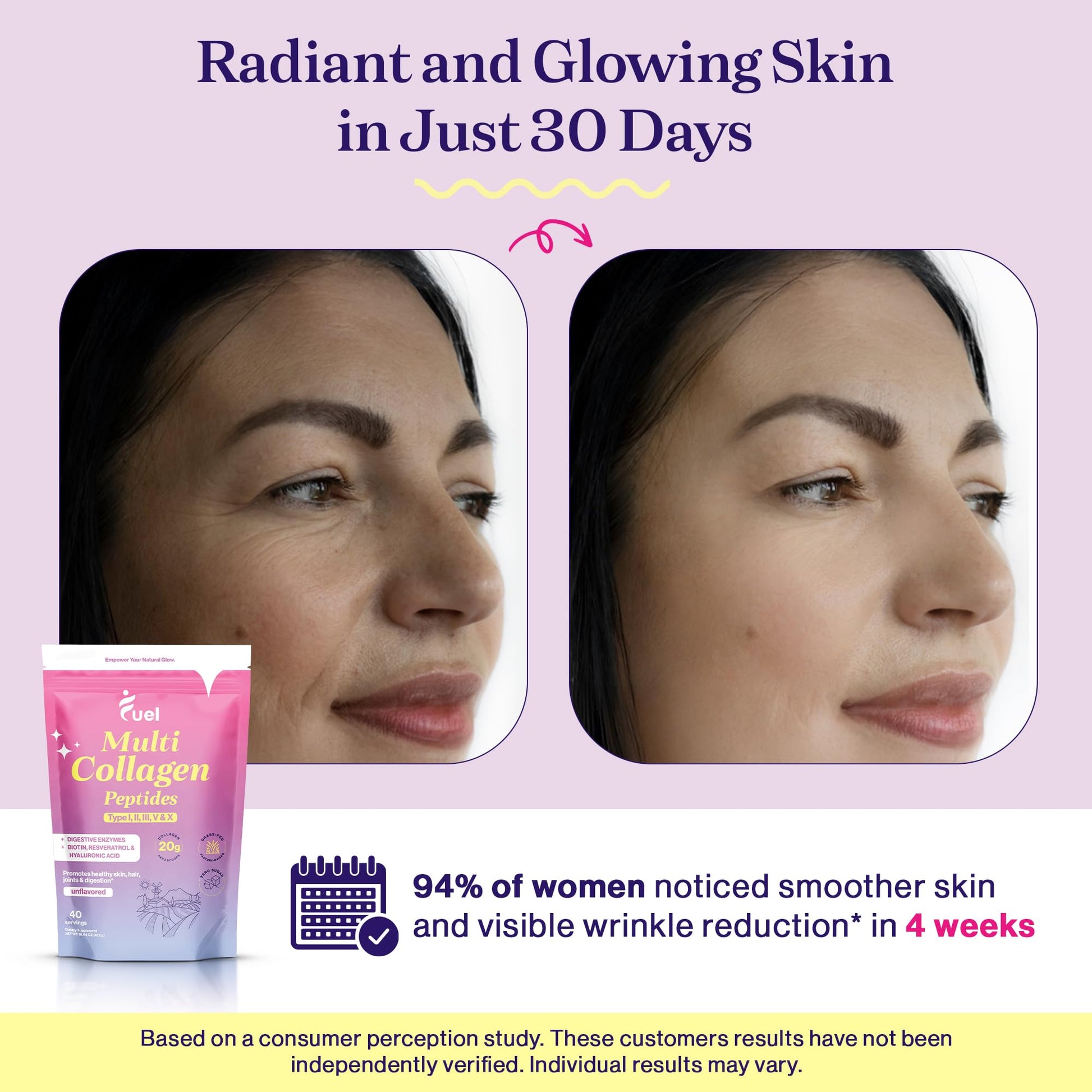 Fuel Multi Collagen Peptides Powder – 20g Hydrolyzed Collagen I, II, III, V & X for Hair, Skin, Nails & Joint Support – Better Absorption – Keto & Gluten Free, Unflavored 9.31oz
