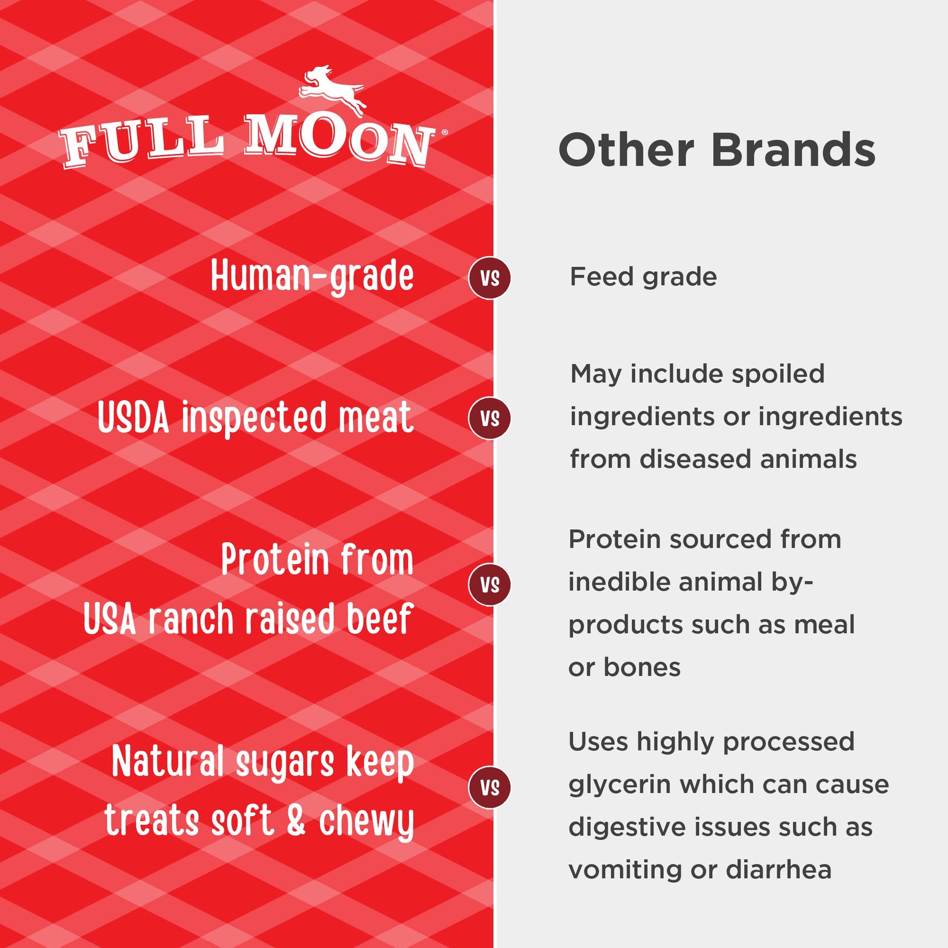 • U.S-GROWN BEEF: Full Moon treats are proudly made in the United States using regionally sourced ingredients, including USDA approved free range beef