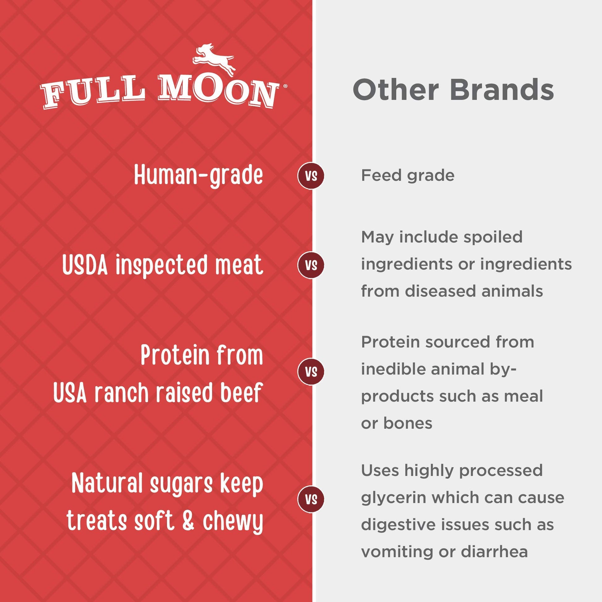 - U.S.-GROWN BEEF: Full Moon treats are proudly made in the United States using regionally sourced ingredients, including USDA approved beef raised on family ranches.