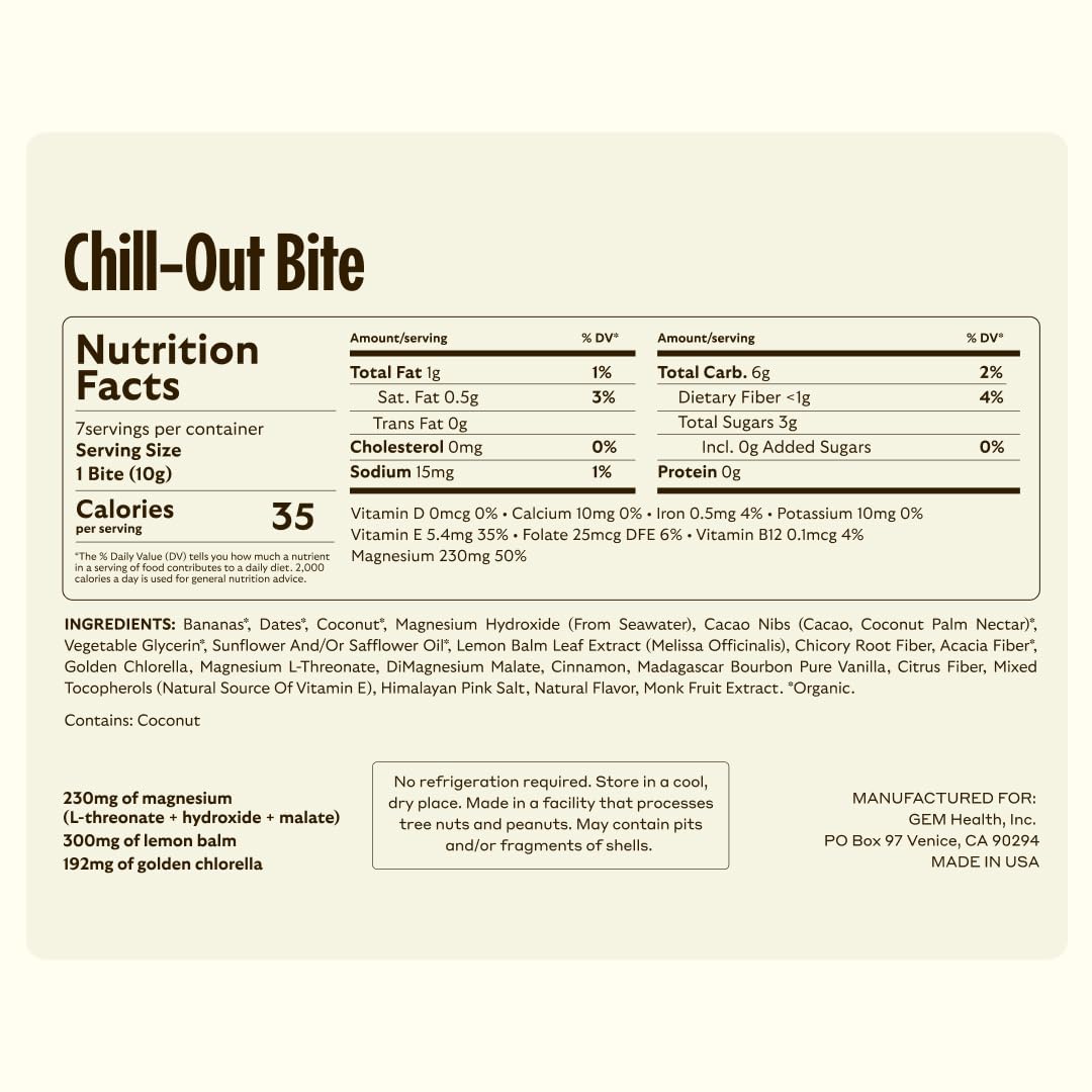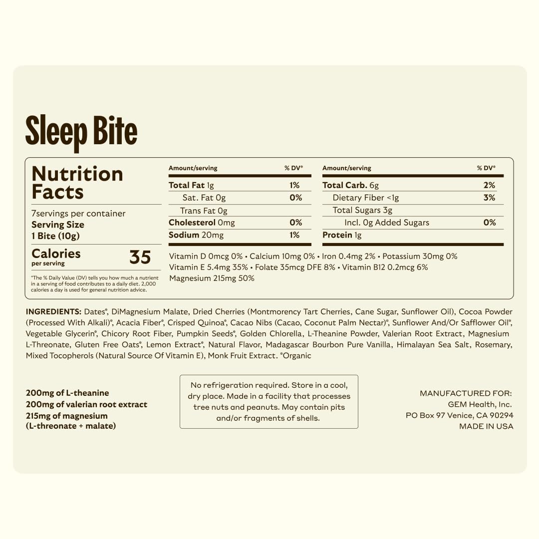 - MADE WITH FOOD, BACKED BY SCIENCE: Unlike traditional sleep supplements, GEM uses whole food nutrients — not synthetics, melatonin or sedatives. Vegan, non-GMO, and female-founded, our Bites are designed for stress management, muscle recovery, and restful sleep with no next-day grogginess and no dependency.