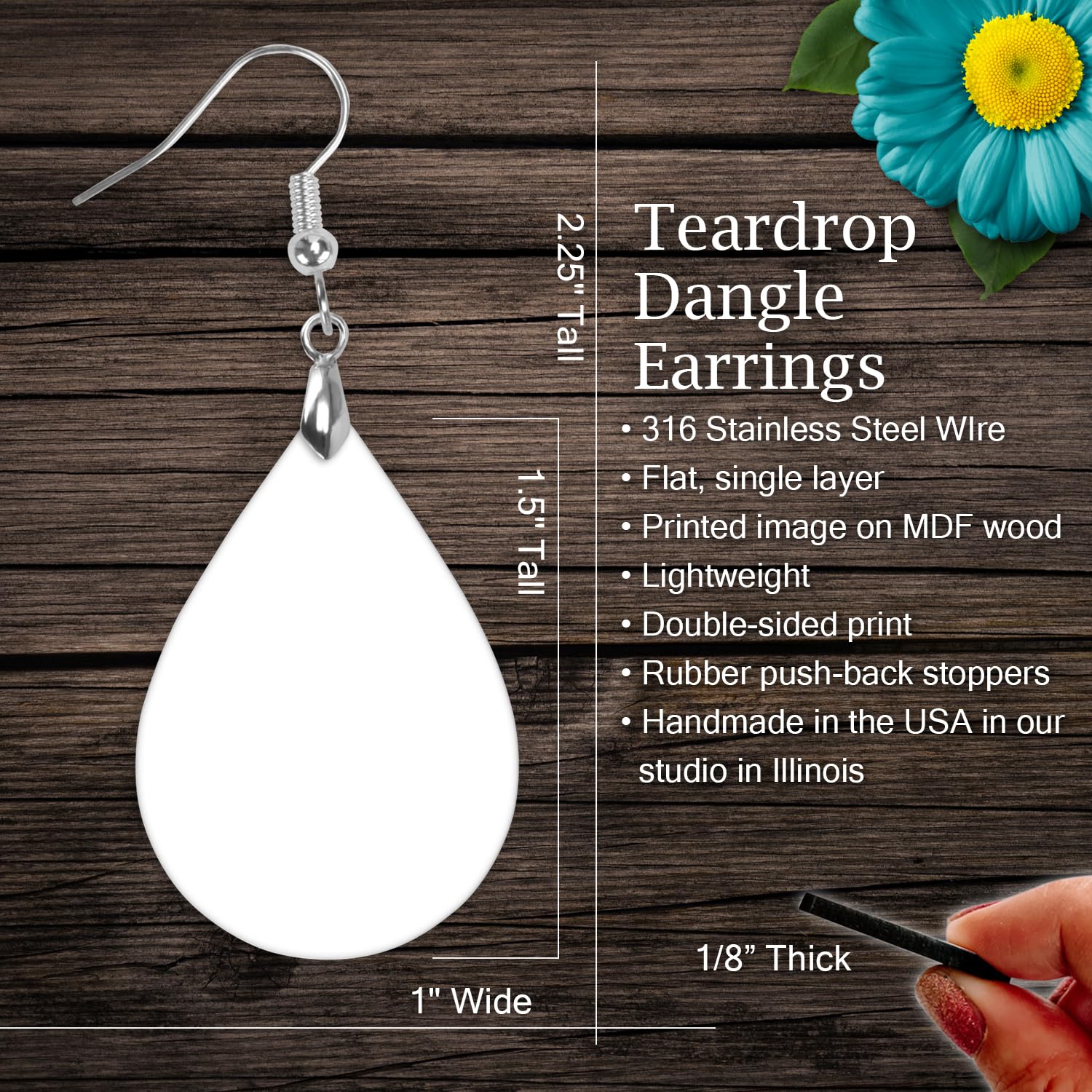 - Handmade Craftsmanship: Each pair is crafted by hand, ensuring attention to detail and quality. Made from MDF wood with a durable, glossy surface, these earrings showcase a flat, printed design on both sides for added charm and style.