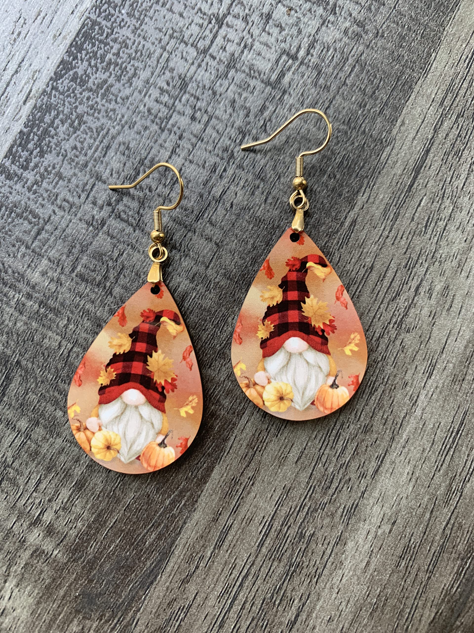 Gnome Fall Earrings for Women Autumn Thanksgiving Lightweight Teardrop Dangle Fun Colorful Statement Jewelry Handmade by the Painted Pug (Fall Gnome Leaves)