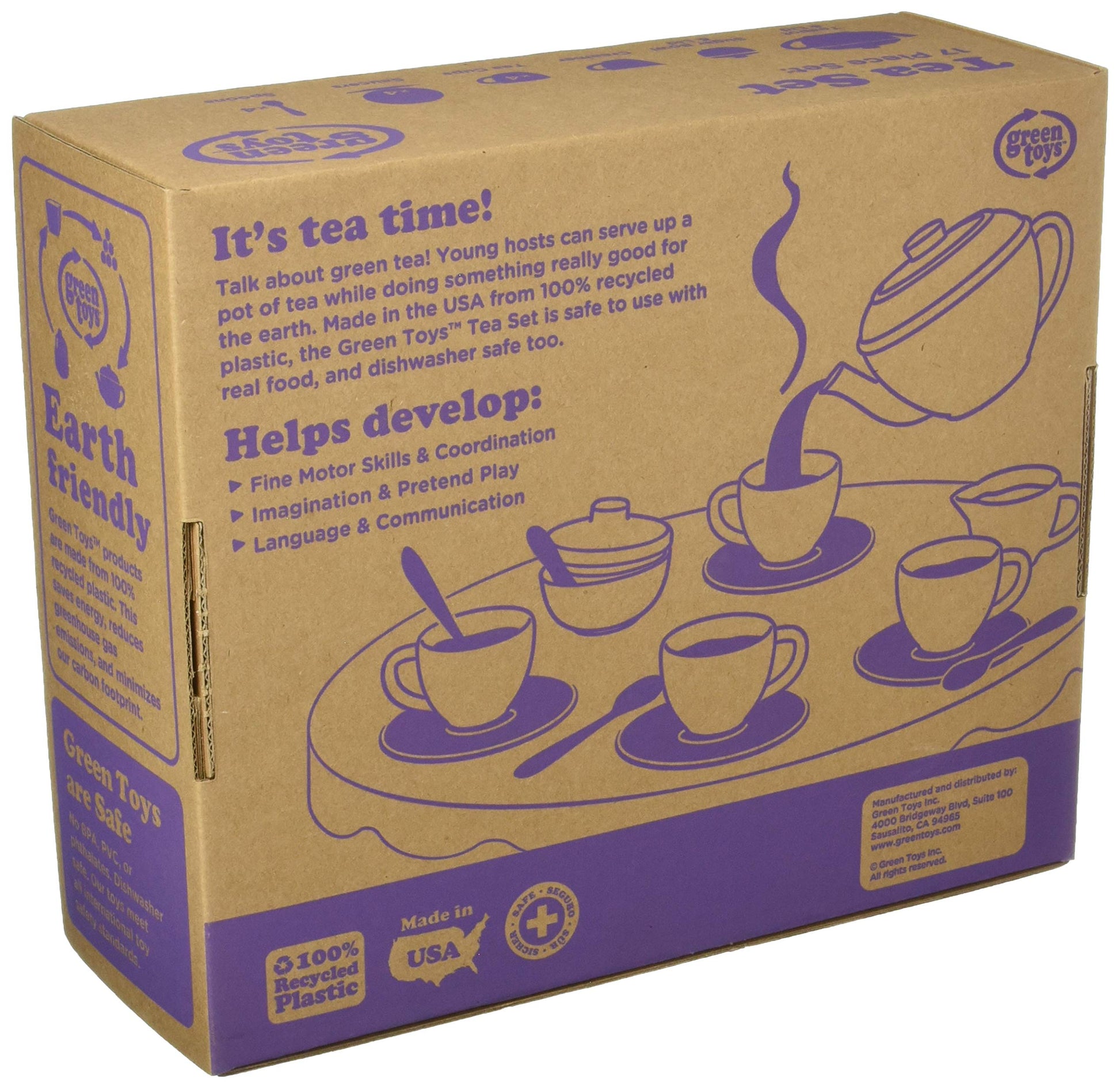Details: Talk about green tea! Young hosts can serve up a pot of tea while doing something really good for the earth. Like all Green Toys products, our Tea Set is helping to reduce fossil fuel use and CO2 emissions, all in the name of Good Green Fun!