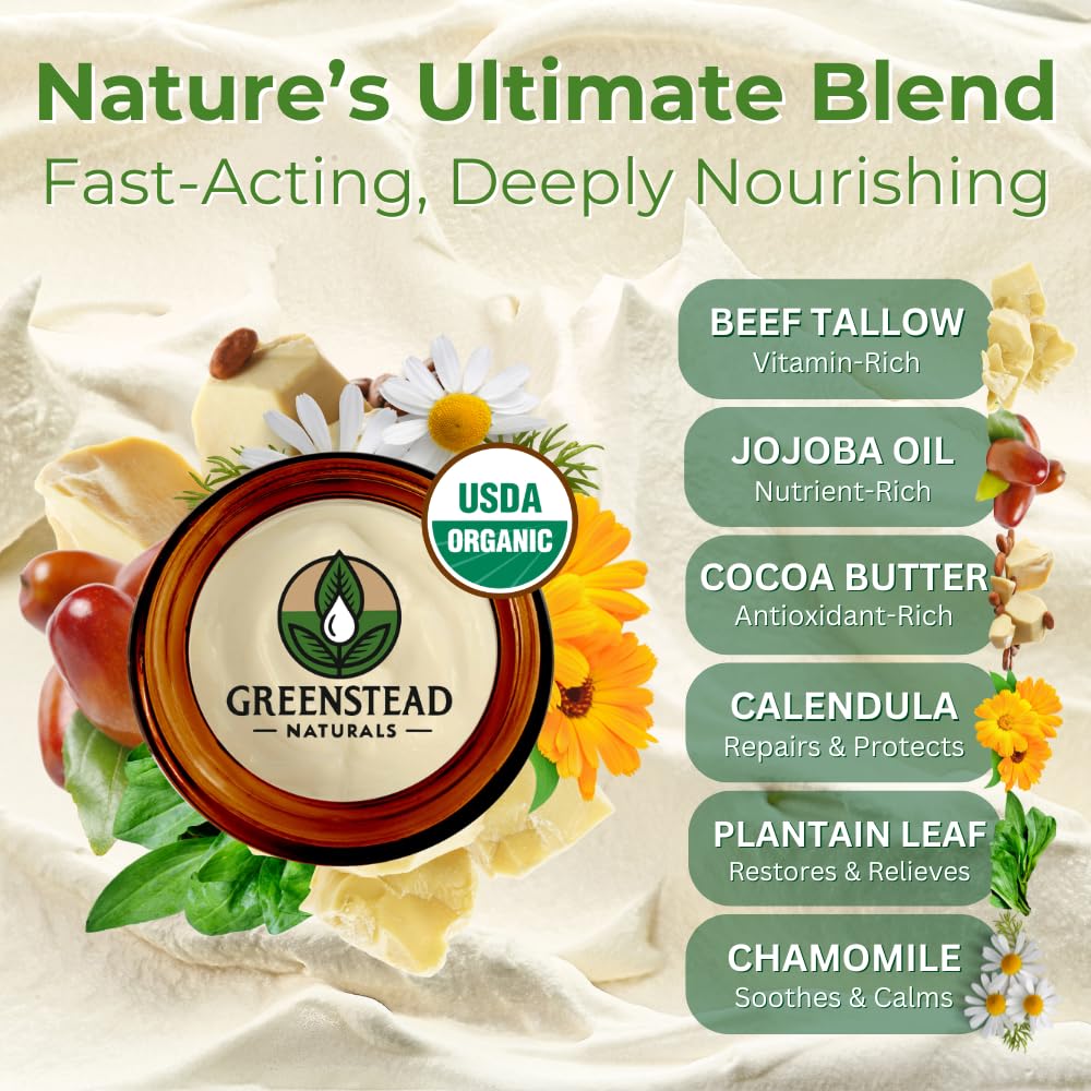- CRAFTED WITH YOU IN MIND: 100% USDA Certified Organic and USA-made, we NEVER import our beef tallow. Our blend of grass-fed tallow and organic herbs offers a smooth, non-greasy feel, leaving skin soft and nourished. For us, tallow is more than a trend; it’s a way of life we’re proud to share with your family.