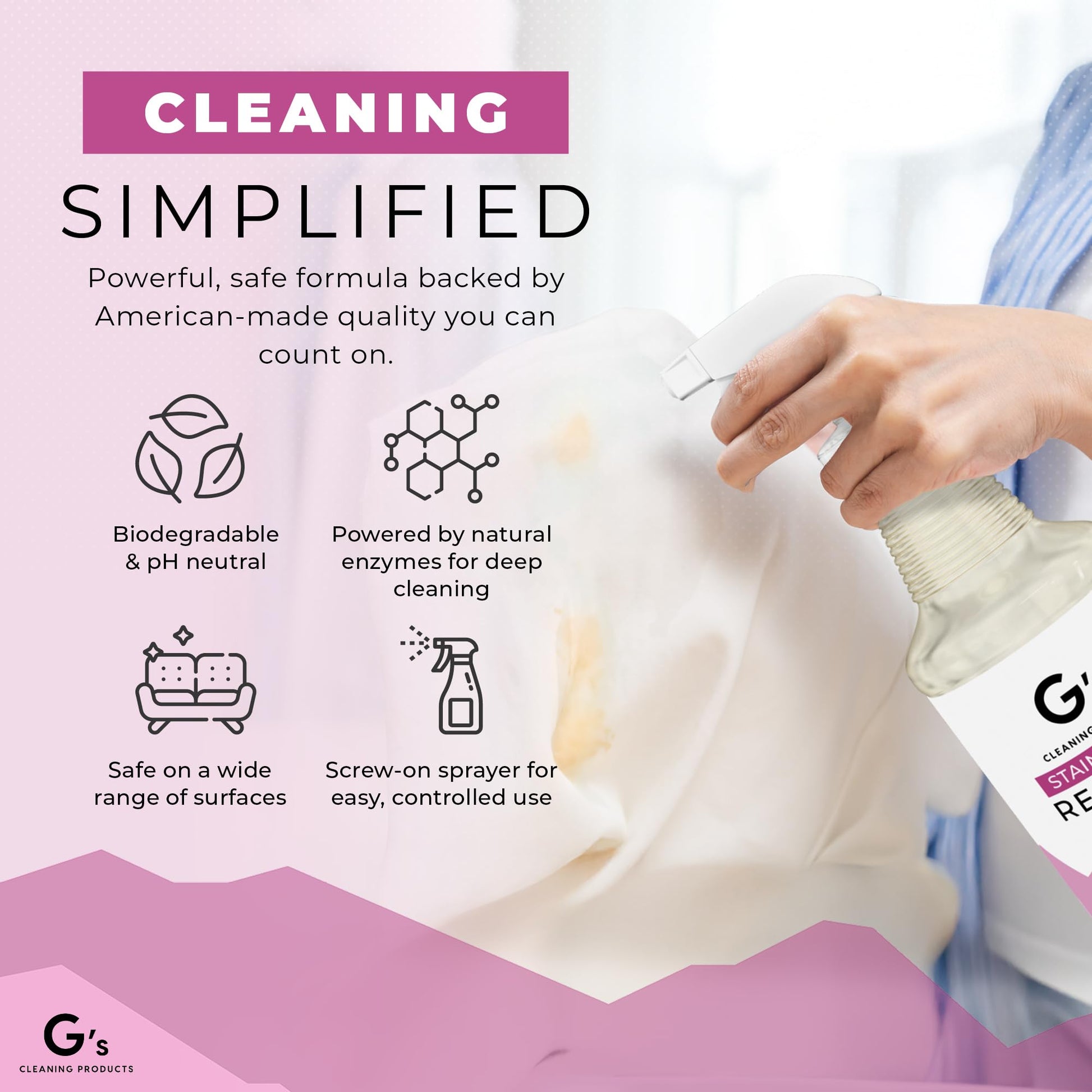 G's Cleaning Biodegradable Stain & Odor Remover Spray – 32 oz Pet Urine Enzyme Cleaner – Pet Odor Eliminator for Home – Cat & Dog Pee Carpet Cleaner – Stain Remover for Rug, Floor, Furniture, Mattress