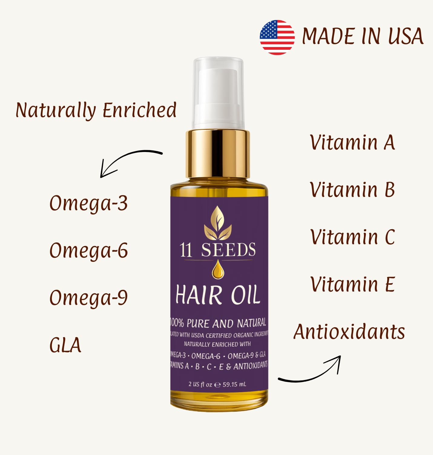 - NATURAL INGREDIENTS: Formulated with USDA Certified Organic ingredients, naturally enriched with Omega-3, Omega-6, Omega-9 fatty acids, GLA, plus Vitamins A, B, C, E, and antioxidants for hair and scalp nourishment