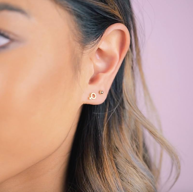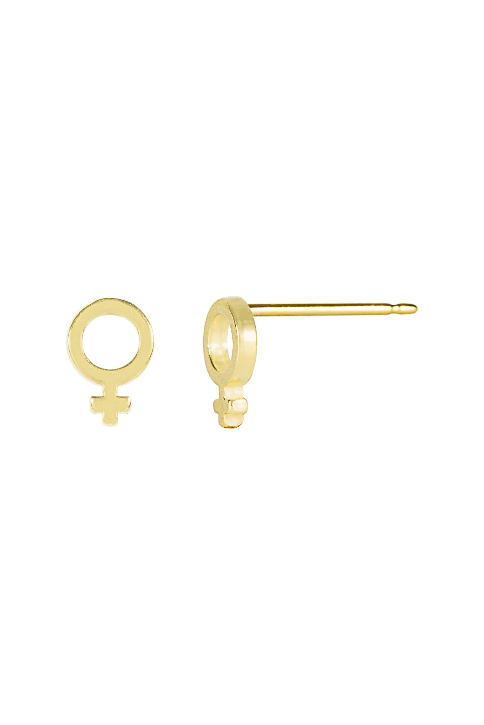 Handmade Gold Female Symbol Stud Earrings, Nickel-Free and Made in America by Katie Dean Jewelry