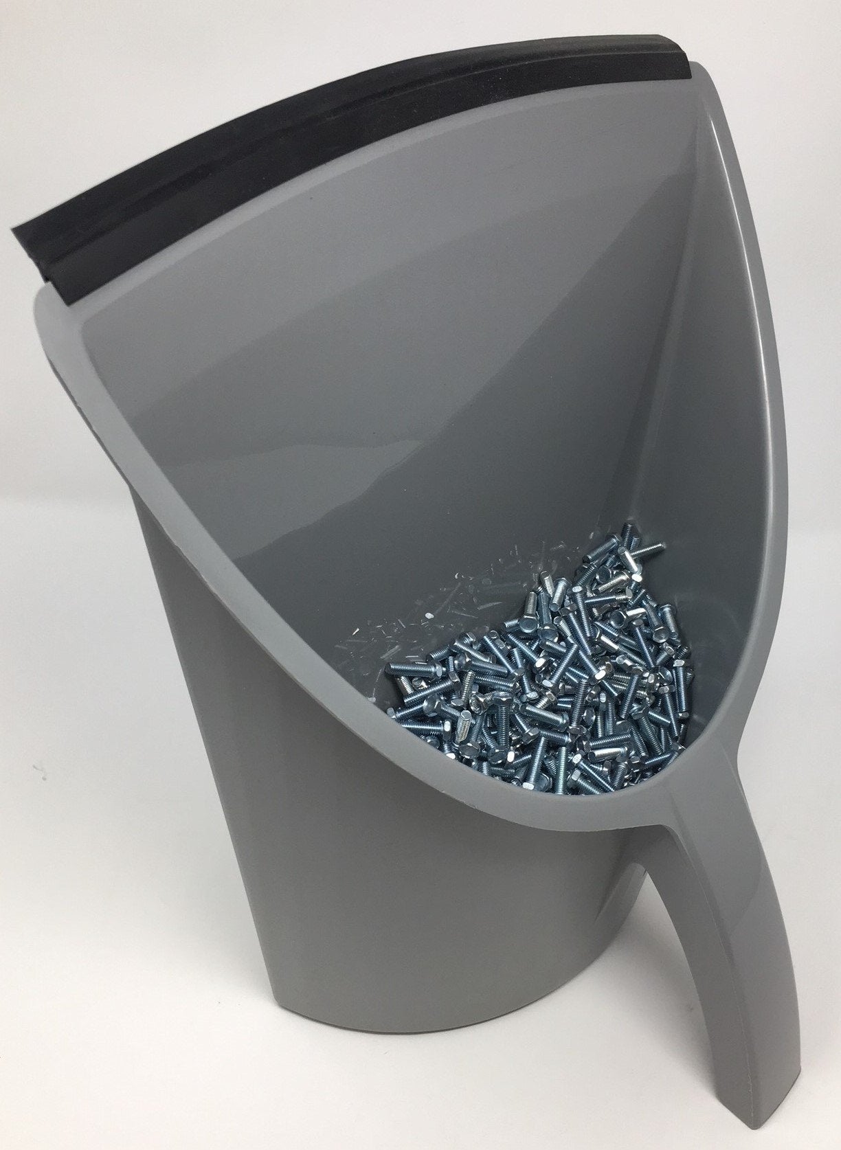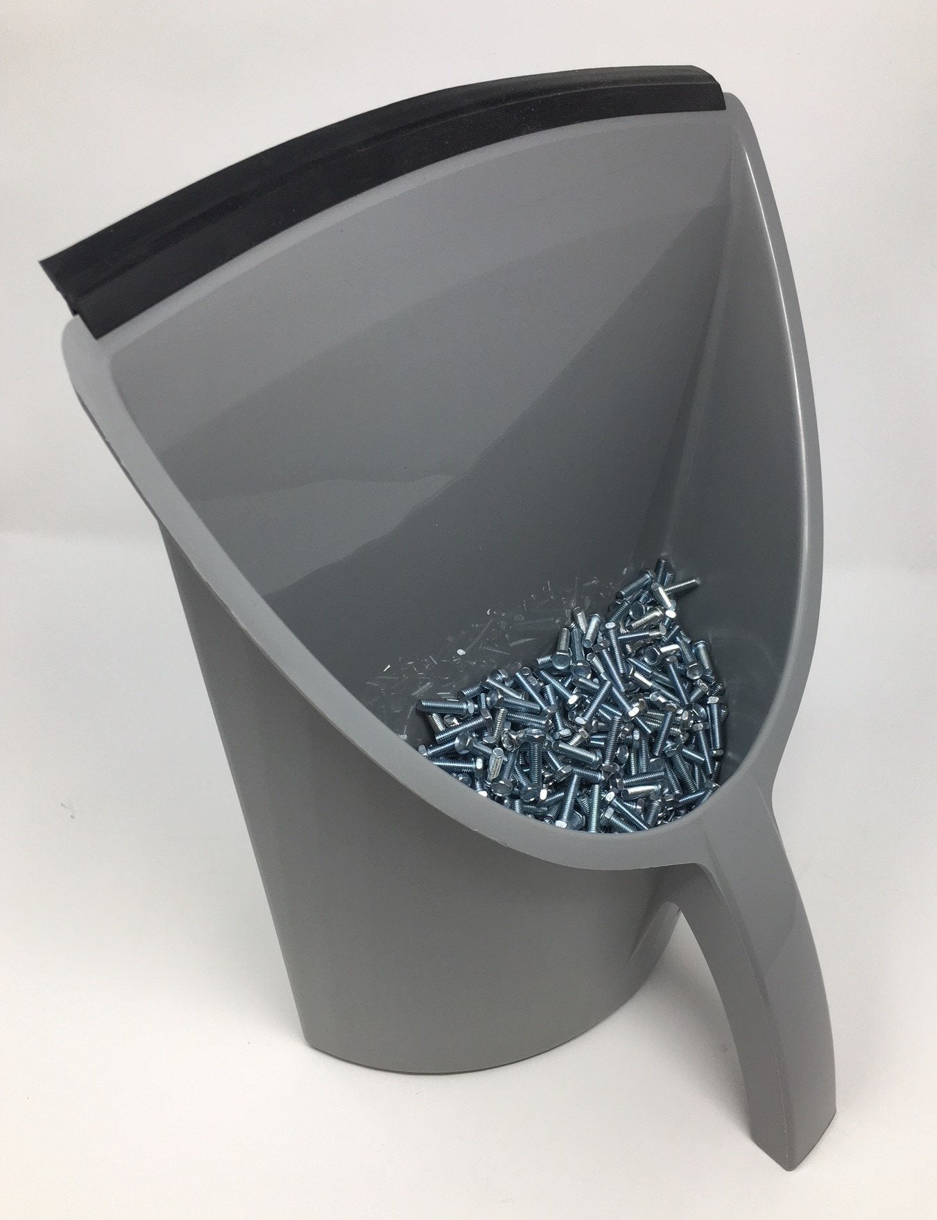 - Stands upright, stackable, multi-purpose plastic dust pan holds dry or liquid materials