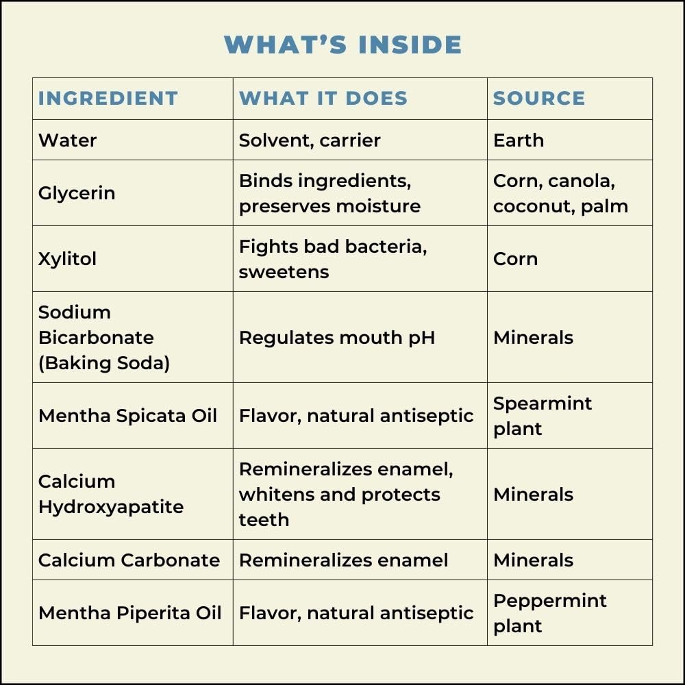 - POWERED BY NATURAL INGREDIENTS FOR CLEAN, SAFE ORAL CARE: Happy Tooth mouthwash is made with natural ingredients like hydroxyapatite, peppermint oil and xylitol. Free from fluoride, alcohol, synthetic dyes, and artificial sweeteners, every rinse supports your mouth’s natural defenses without disrupting its balance. It’s a gentle yet effective formula crafted for the entire family’s peace of mind.