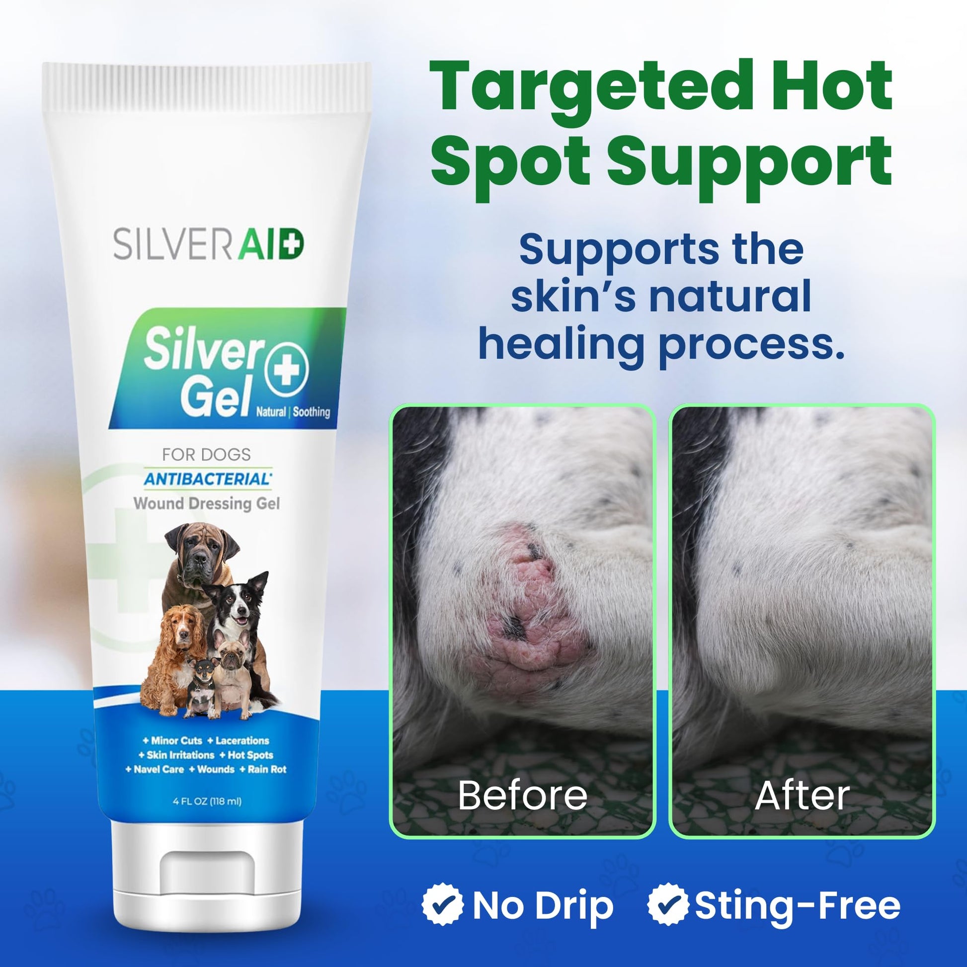• INSTANT HOT SPOT RELIEF FOR DOGS: SilverAid Hot Spot Gel provides fast-acting, cooling relief for dogs suffering from hot spots, itching, rashes, and skin irritations. Whether your dog is dealing with seasonal allergies, insect bites, mosquito bites, or minor wounds, this gel soothes on contact and promotes faster healing. Safe for dogs of all breeds and sizes.