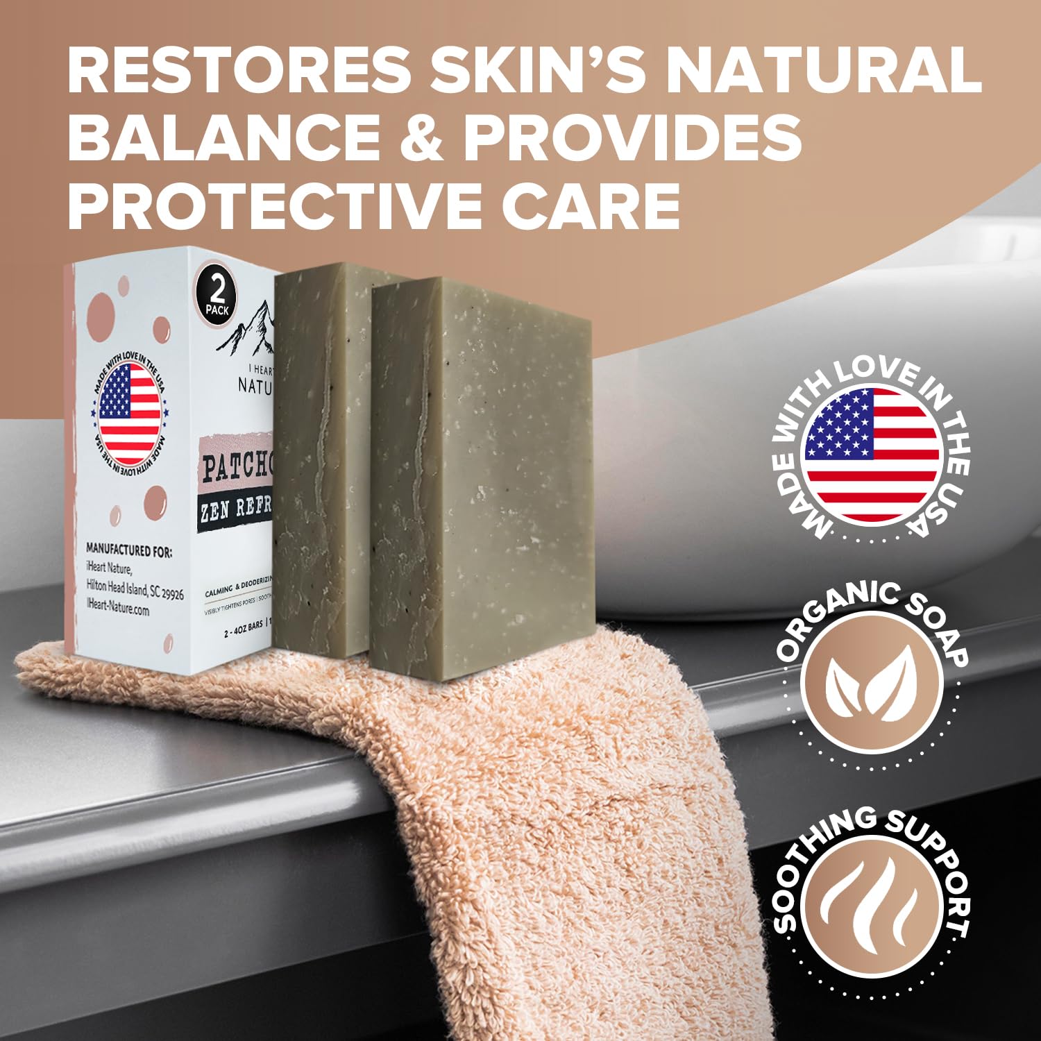 iHeart Patchouli Soap Refresher (2 Packs) - Earthy, Masculine Scent with Deep Cleansing and Moisturizing Mens Bar - With Shea butter for Rich Creamy Lather - Perfect for Men with Active Lifestyle