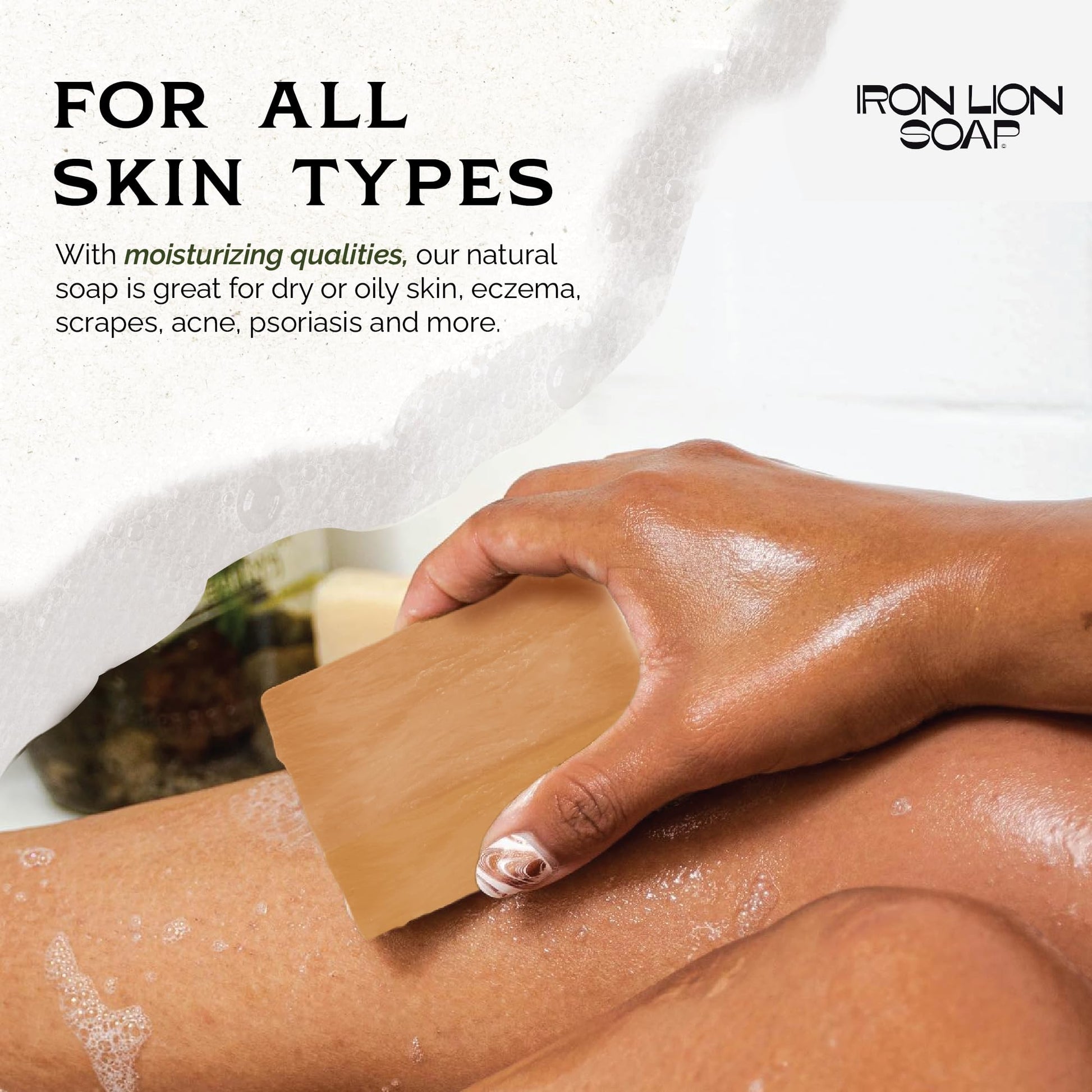 - ECO-FRIENDLY COMMITMENT: We take pride in our eco-friendly and plant based approach. Our natural soap comes in post-consumer recycled packaging, embodying our dedication to both your well-being and the environment. When you choose Iron Lion Soap, you choose a greener tomorrow. Perfect for sensitive skin, our handmade soap makes every wash a step towards a clean and fresh feeling.