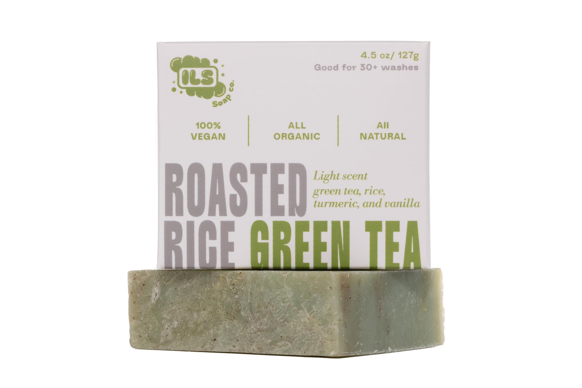 ILS Soap co - Roasted Rice Green Tea (Green Tea, Turmeric, Vanilla & Rice) All Natural Bar Soap for All Skin Types - Plant Based, Cold Process and Handmade in the USA (single bar)