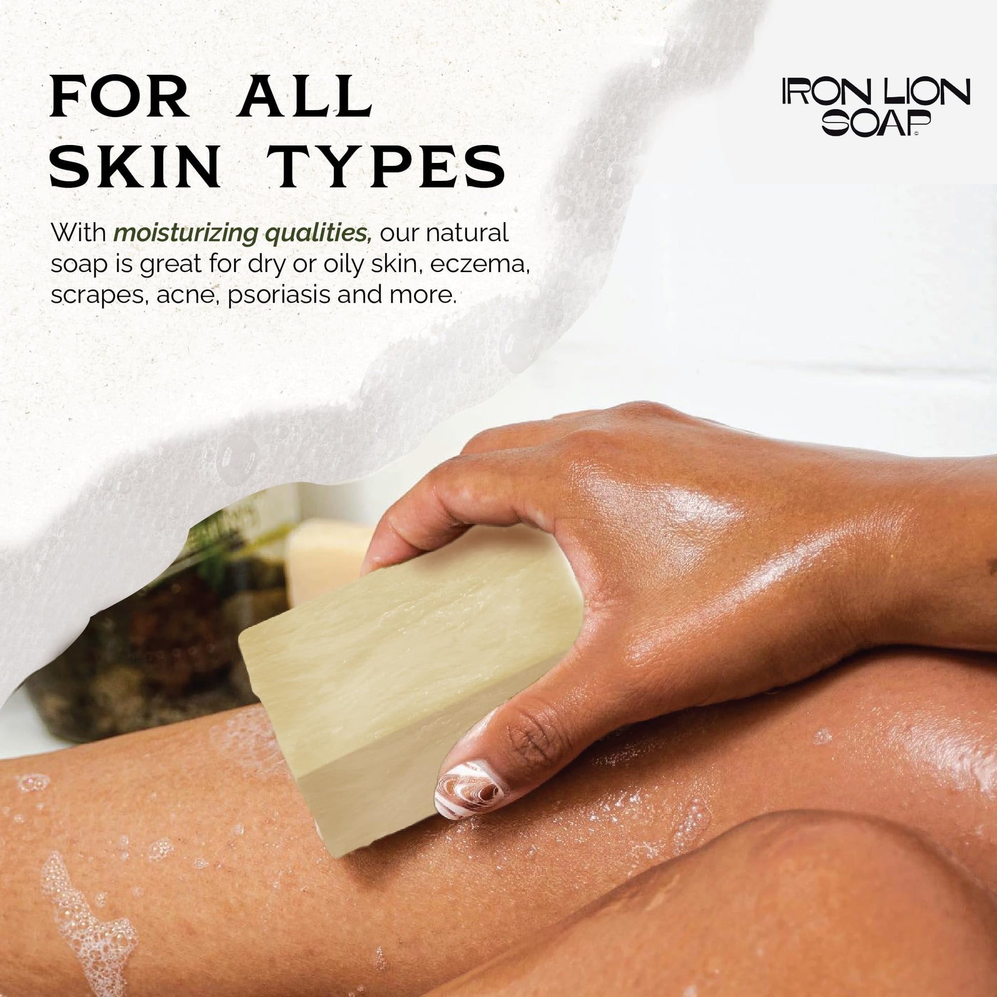 - ECO-FRIENDLY COMMITMENT: We take pride in our eco-friendly and plant based approach. Our natural soap comes in post-consumer recycled packaging, embodying our dedication to both your well-being and the environment. When you choose Iron Lion Soap, you choose a greener tomorrow. Perfect for sensitive skin, our handmade soap makes every wash a step towards a clean and fresh feeling.