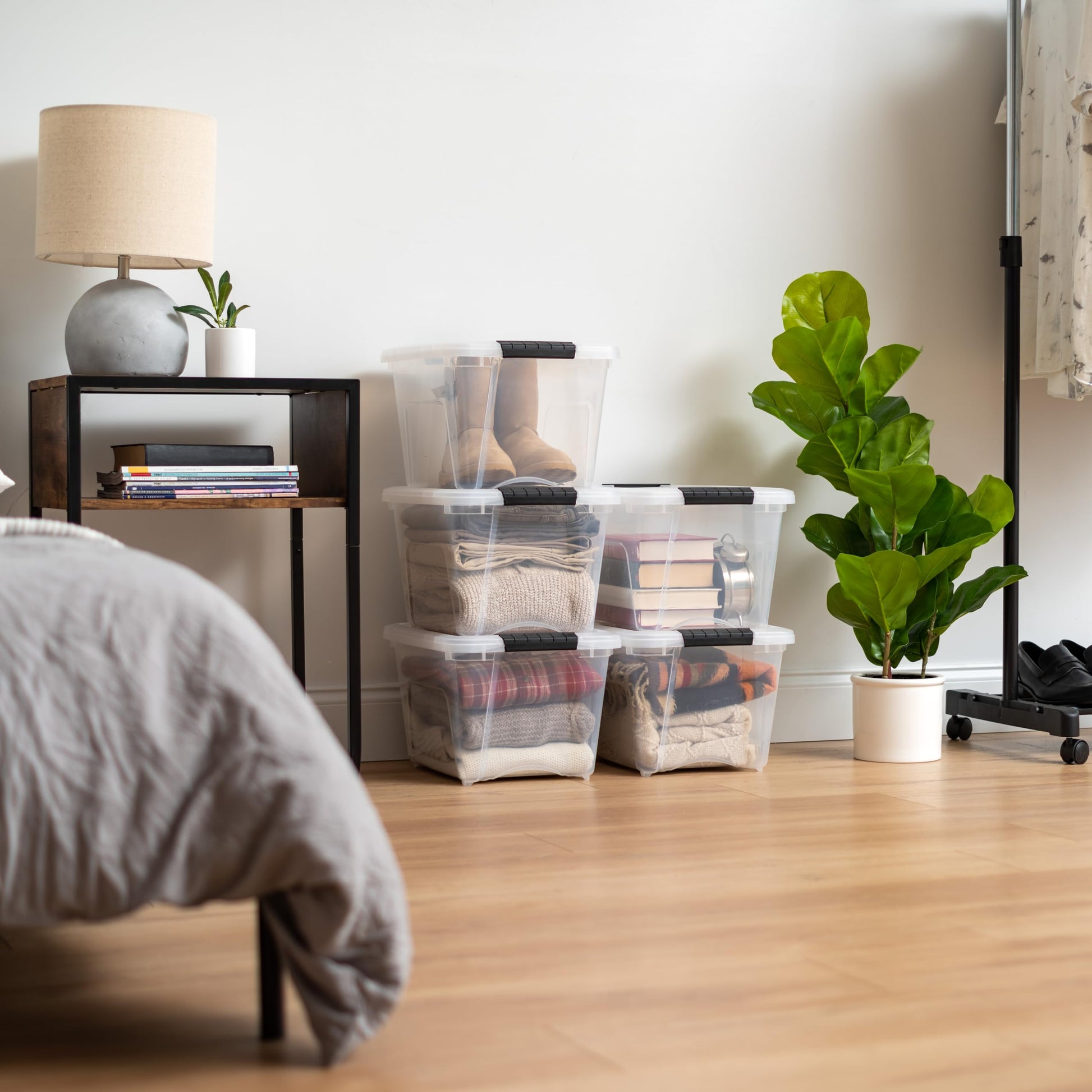 - STACKABLE STORAGE: Maximize space in your home, office, or playroom. The securely locking lid keeps items safe and allows bins to be stacked on top of each other.