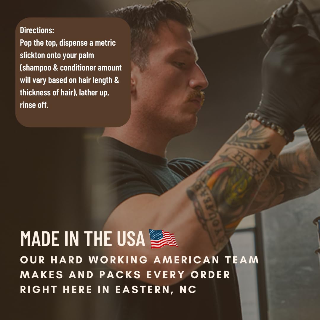 Details: The Johnny Slicks Hair Cleaning Kit is a powerhouse duo designed to help support hair and scalp health while delivering the signature rugged freshness you expect. Featuring a 16 oz Organic Shampoo and a 16 oz Organic Conditioner, this 2-piece set delivers a premium cleanse and conditioning experience—free from harsh chemicals, synthetic preservatives, or filler ingredients.The Organic Shampoo is powered by a base of purified water and castile soap, bolstered with aloe leaf juice, castor oil, coconut oil, and vitamin E. Together, these ingredients gently cleanse the scalp and hair without stripping away natural oils. Jojoba oil provides an additional layer of mild cleansing and hydration, making it ideal for daily use.Pair it with the Organic Conditioner, formulated with rich moisturizers like shea butter, olive oil, and sunflower oil. This blend helps support smoother, softer hair while aiding with manageability, hydration, and scalp comfort. The conditioner’s natural oil base—featuring vitamin E, jojoba, castor oil, and coconut oil—adds shine and helps dryness without weighing hair down.Whether your goal is to wash away the day or start your morning with intention, this kit delivers a grooming routine you can rely on. The rugged scent adds a bold finishing touch, crafted to leave a clean yet commanding impression.Johnny Slicks is a veteran-owned company that focuses on men's grooming products. We don't just make products, we invent them. Our organic formulas are handmade in the USA and feature high-quality ingredients that have a purpose. We don't use preservatives or fillers that damage hair and skin. Are you ready to look and smell like the rugged man you are? Indulge in Johnny Slicks products and tame the beast.