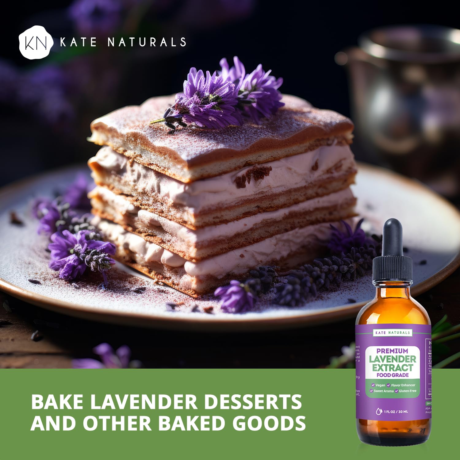 Kate Naturals Lavender Extract for Baking, Drinks, Coffee, Lattes. Food Grade Lavender Oil for Flavoring & Cooking (1oz, Sugar Free)