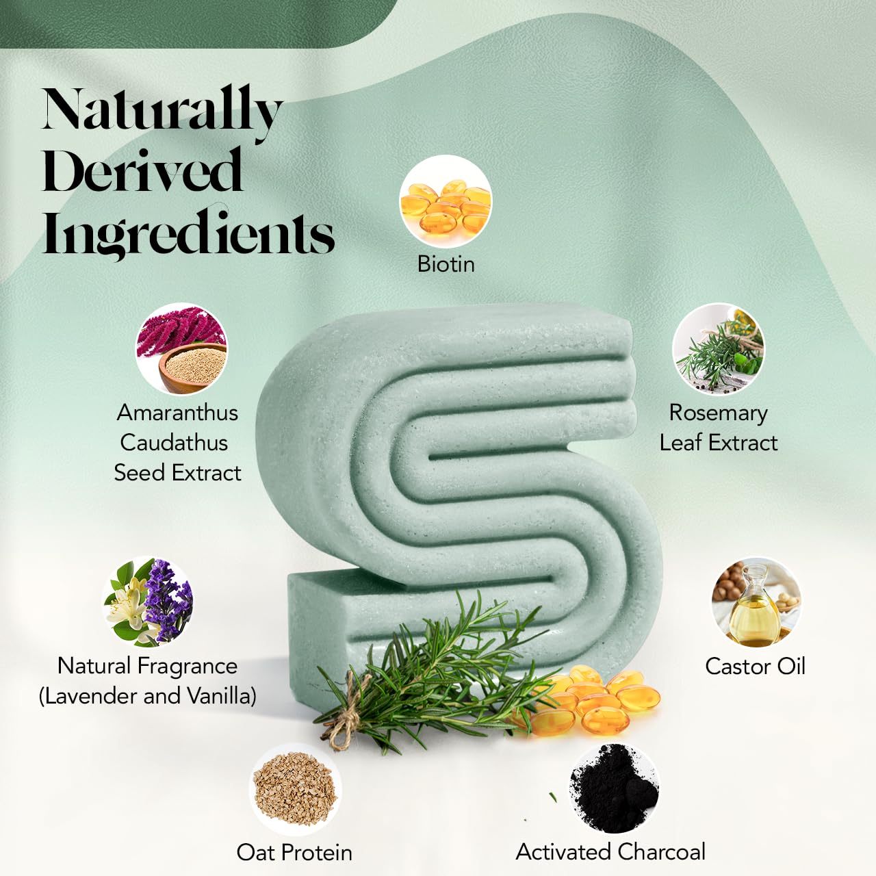 - SAFE & GENTLE FOR ALL HAIR TYPES — pH balanced and free from parabens, phthalates, silicones, and sulfates, this vegan, cruelty-free shampoo bar is safe for color-treated hair and leaves no residue, offering a clean, gentle wash every time.