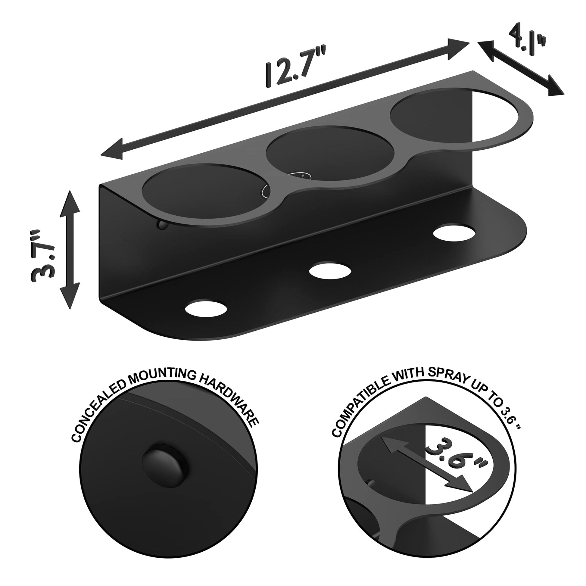 Koova 3 All-Purpose Spray Bottle Holder | Easy Install Wall Mount Hardware Included | Heavy-Duty Powder Coated Steel Storage Rack for Garage And Home | Craft Workspace Paint Bottle Organizer USA Made
