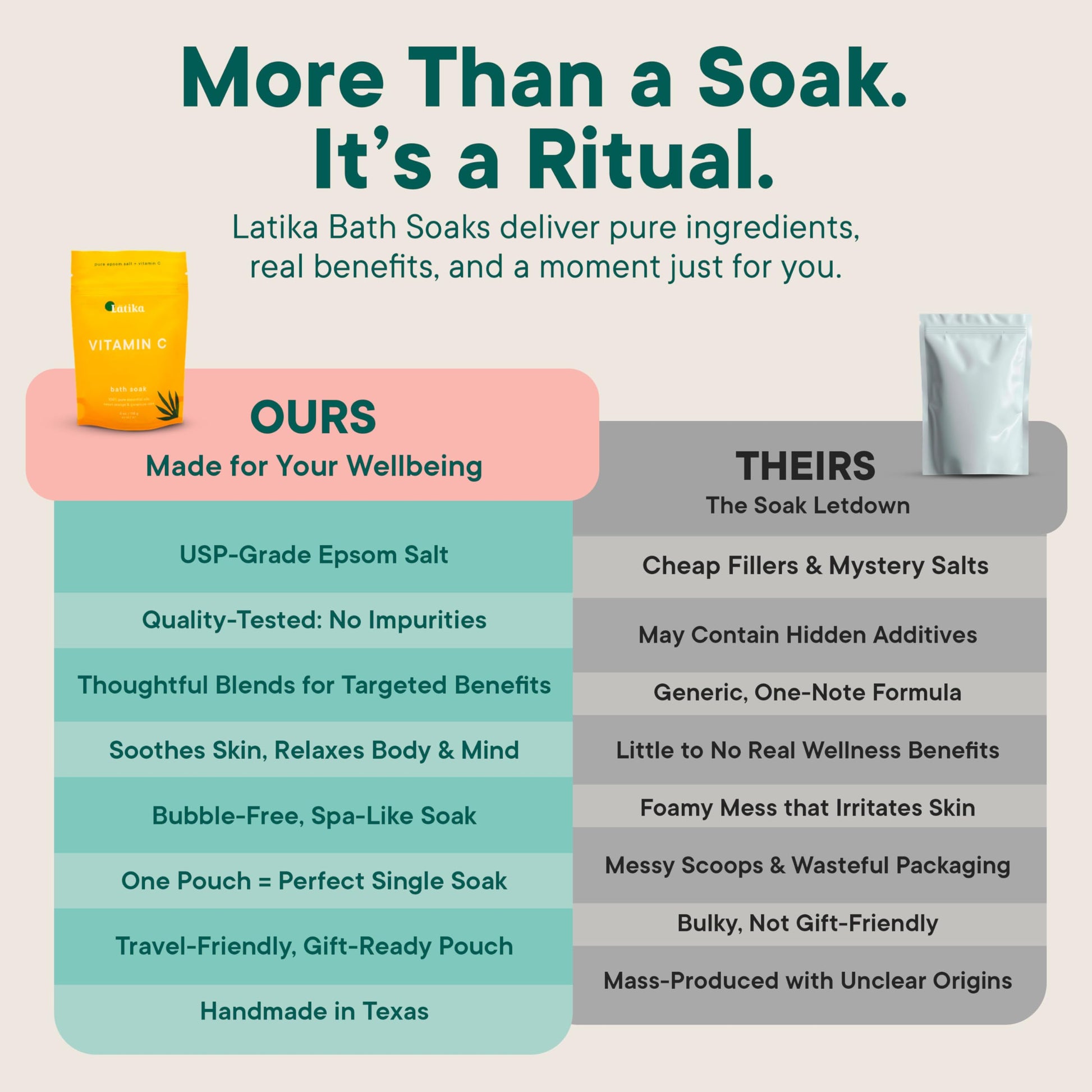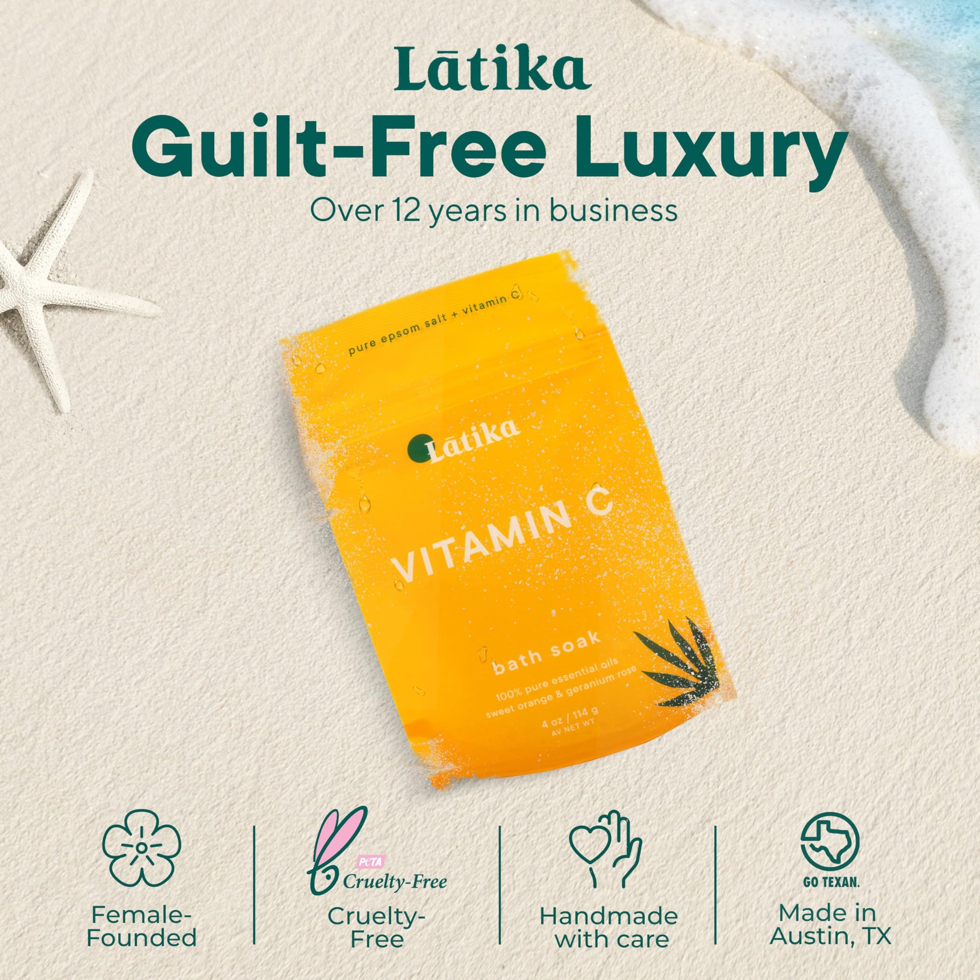 Latika Soaks Set of 3 - Vitamin C Bath Soaks with Sweet Orange and Geranium Rose - Moisturizing Epsom Salt Soaks for Stress Relief, Detox, and Antioxidant Skincare - at Home Spa Retreat