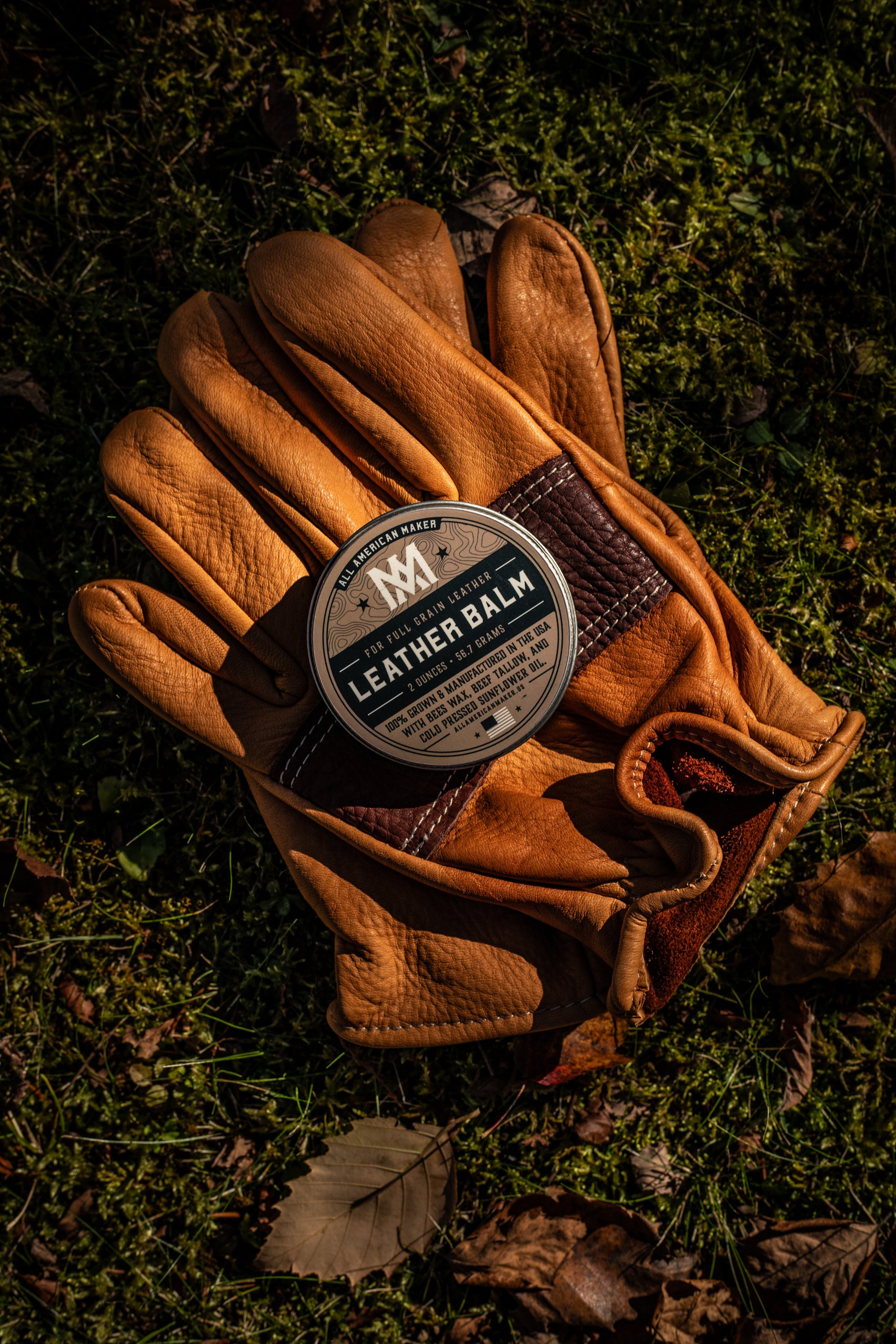Our Leather Balm is thoughtfully grown and manufactured in the USA using beeswax, beef tallow, and cold-pressed sunflower oil. Designed for expert leather care, it deeply conditions and protects, helping to maintain flexibility and prevent cracking. Its natural ingredients work together to enhance the durability and appearance of your leather goods, providing long-lasting nourishment without synthetic additives.