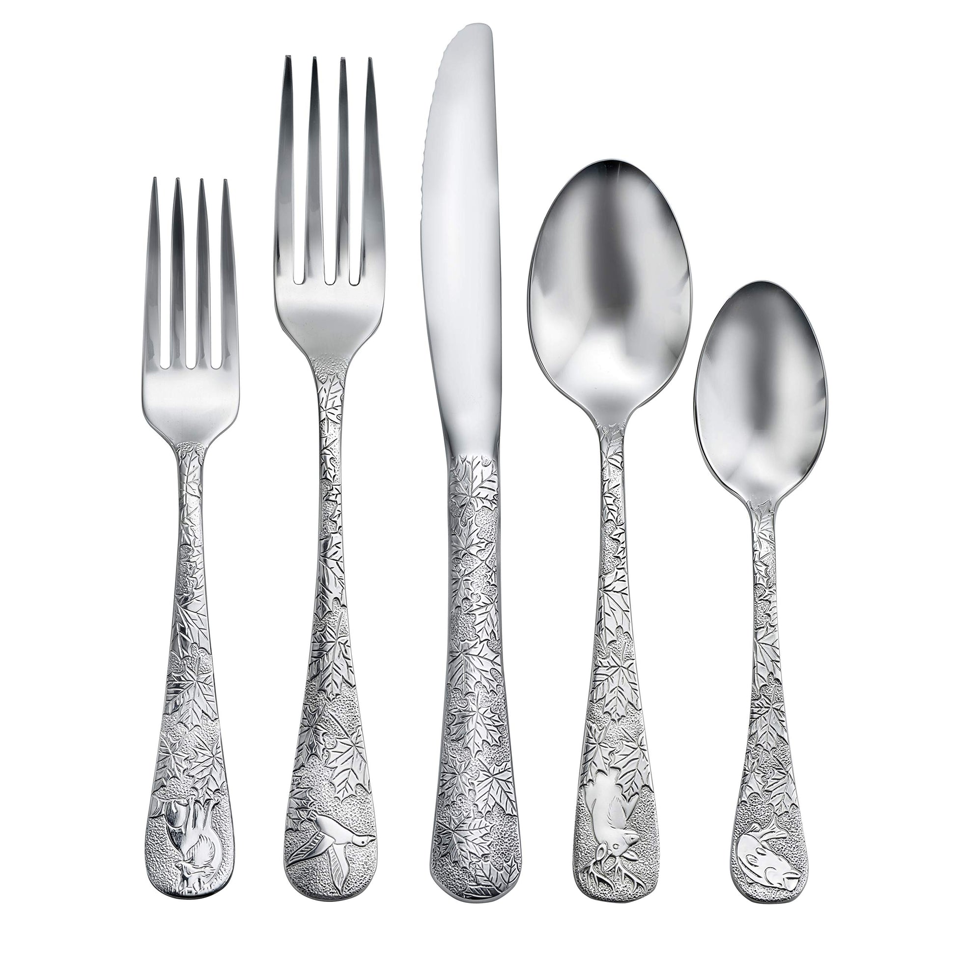 - 20PC SET INCLUDES: 4 Dinner Forks, 4 Dinner Knives, 4 Place Spoons, 4 Teaspoons, 4 Salad Forks