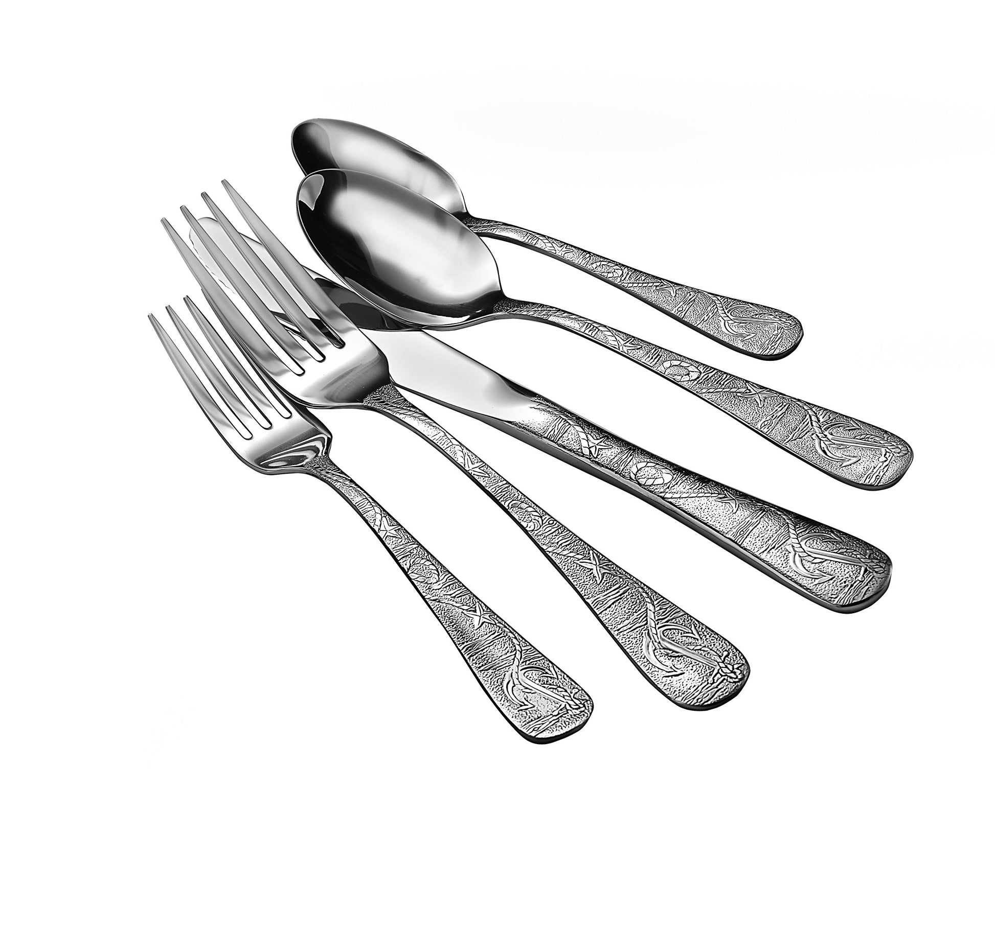 - 45PC SET INCLUDES: 8 Dinner Forks, 8 Dinner Knives, 8 Place Spoons, 8 Teaspoons, 8 Salad Forks, 1 Serving Spoon, 1 Slotted Spoon, 1 Butter Knife, 1 Sugar Spoon, 1 Cold Meat Fork