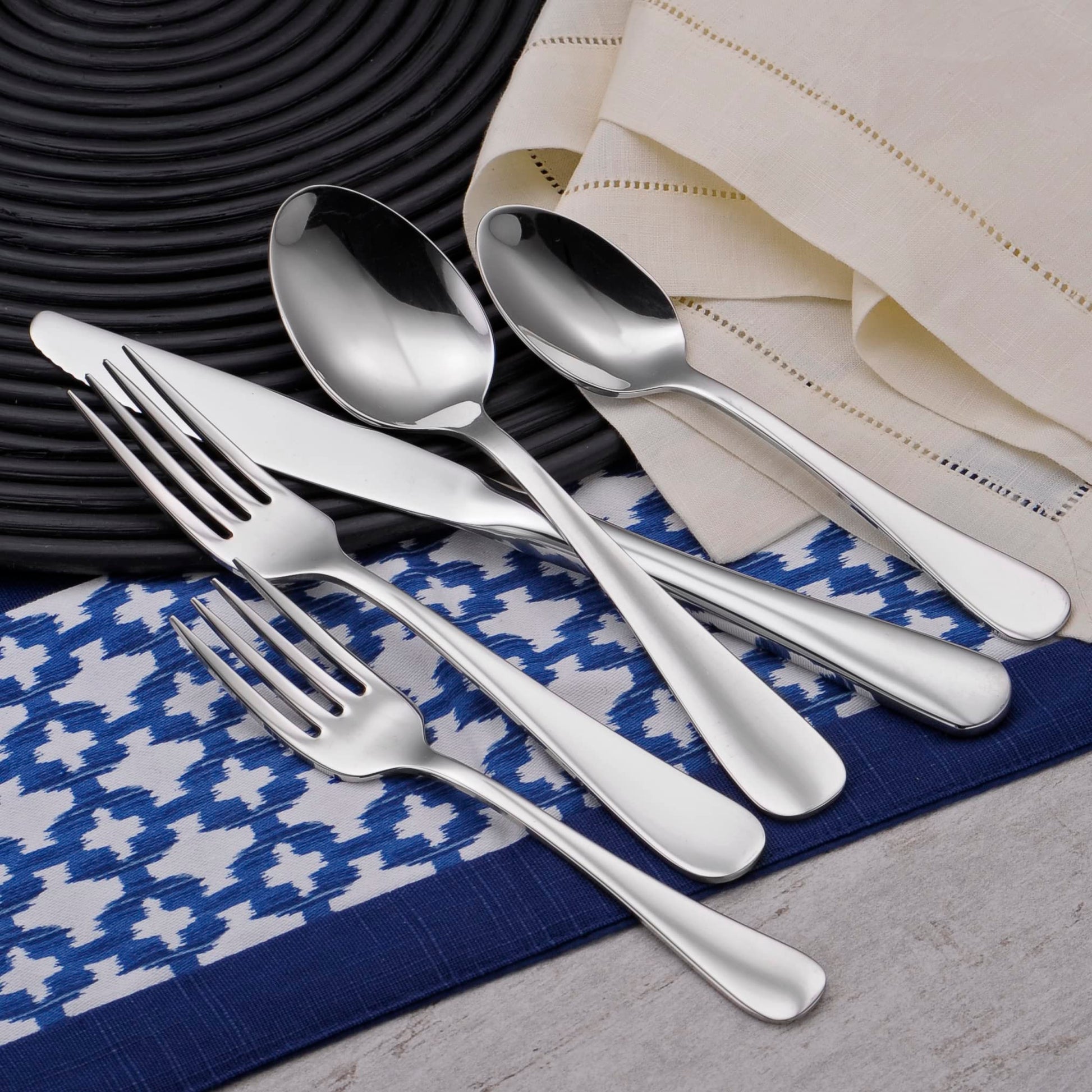 - 20PC SET INCLUDES: 4 Dinner Forks, 4 Dinner Knives, 4 Place Spoons, 4 Teaspoons, 4 Salad Forks