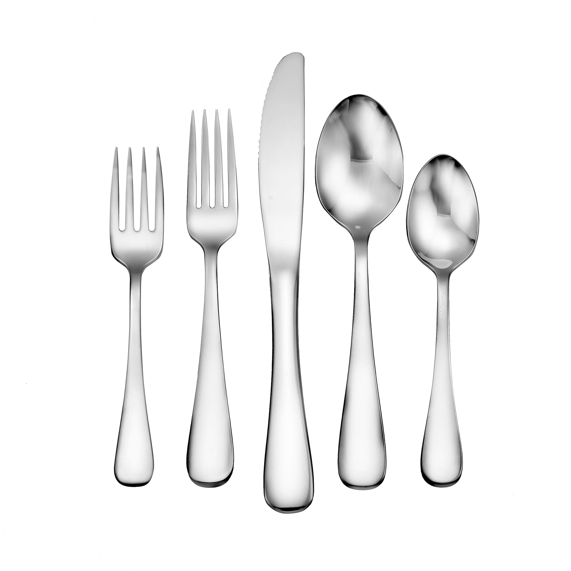 - 45PC SET INCLUDES: 8 Dinner Forks, 8 Dinner Knives, 8 Place Spoons, 8 Teaspoons, 8 Salad Forks, 1 Serving Spoon, 1 Slotted Spoon, 1 Butter Knife, 1 Sugar Spoon, 1 Cold Meat Fork