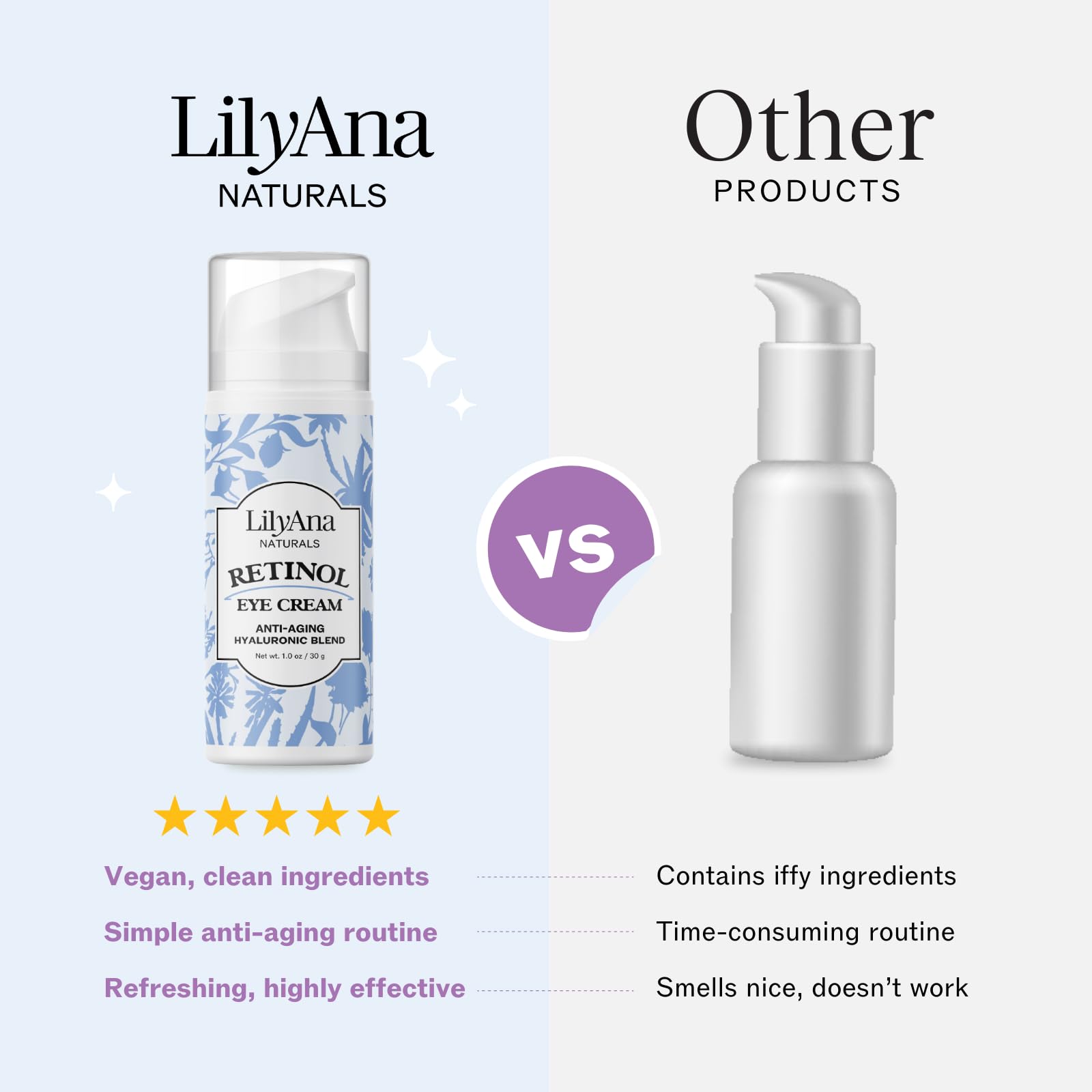 LilyAna Naturals Eye Cream - Eye Cream for Dark Circles and Puffiness, Under Eye Cream, Anti Aging Eye Cream Reduce Fine Lines and Wrinkles (1.0 Ounce, Retinol)