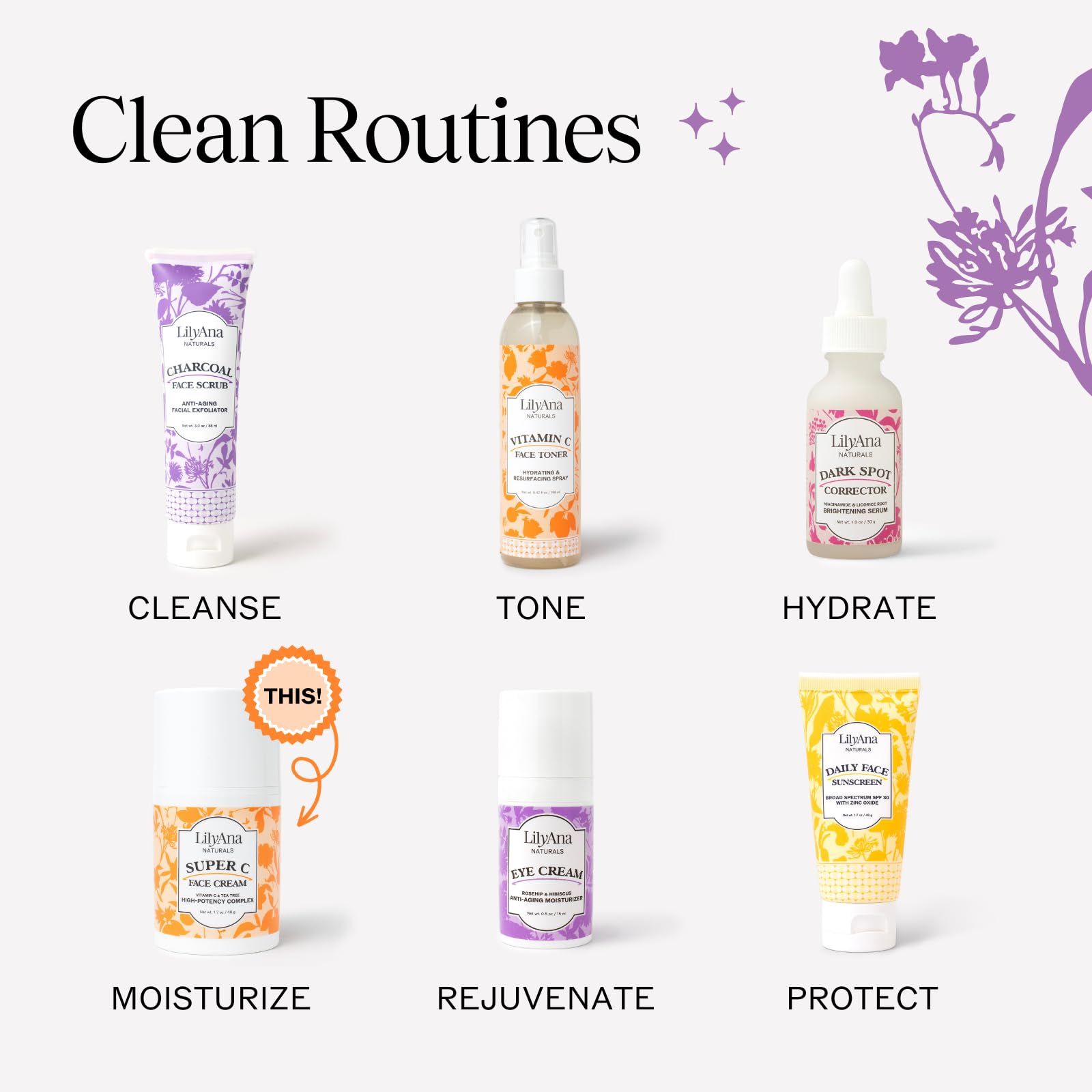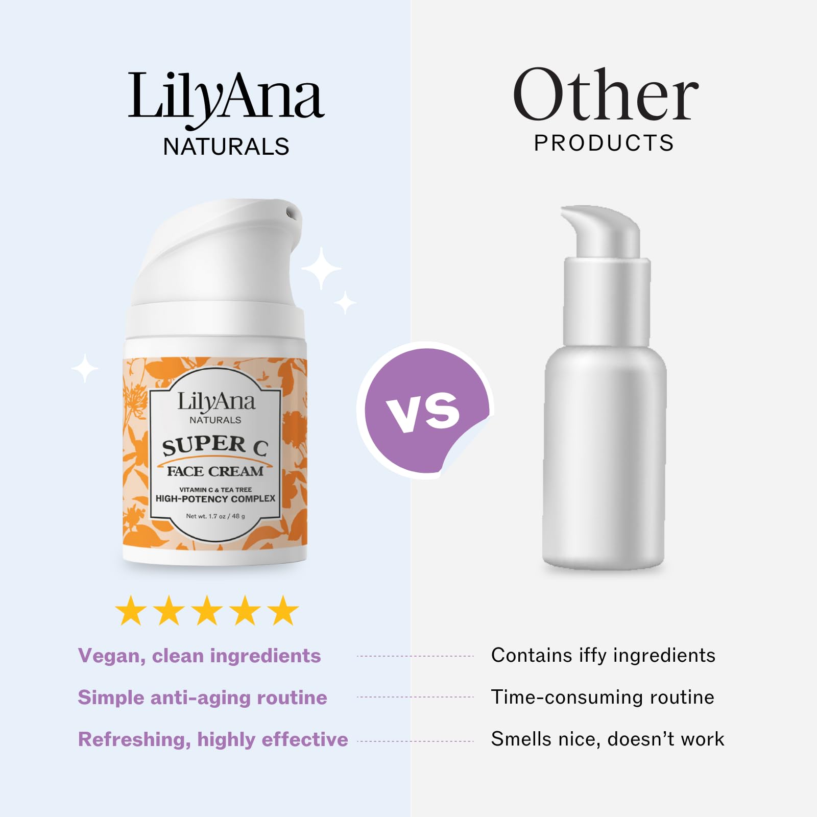 LilyAna Naturals Face and Neck Moisturizer for Women and Men - Moisturizer Face and Neck Cream for Dry Skin and Dark Spot Brightening (Super C, 1.7oz)