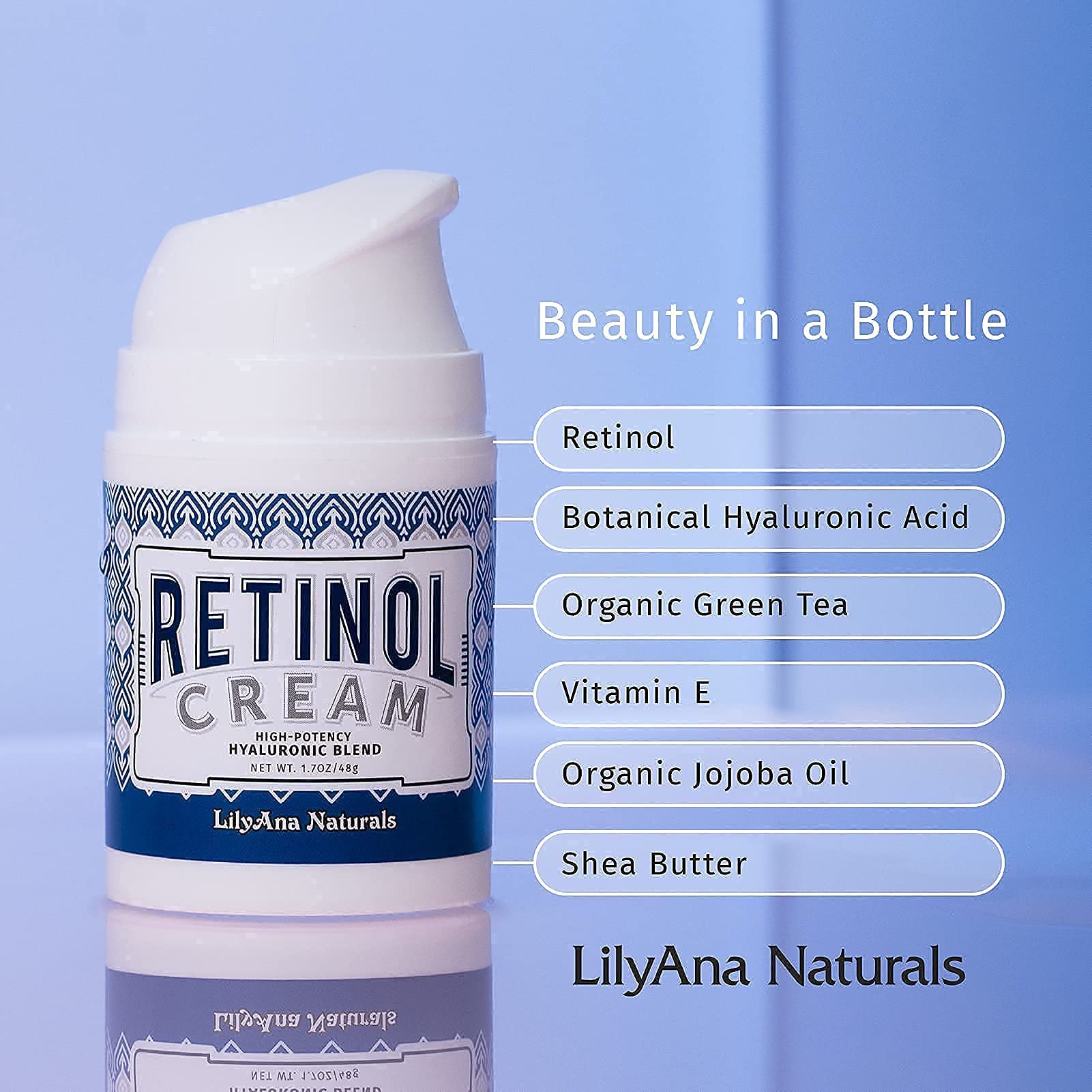 - Advanced Anti-Aging. Maximum strength Retinol formula delivers lifting, brightening, and rejuvenating benefits to the skin without the dryness commonly associated with Vitamin A. Moisturizing formula features Aloe, Hyaluronic Acid, Vitamin E, Green Tea, Shea Butter, and Jojoba Oil to nurture and hydrate while pure Retinol helps combat the five visible signs of aging: wrinkles, fine lines, uneven skin tone, rough texture, and loss of firmness.