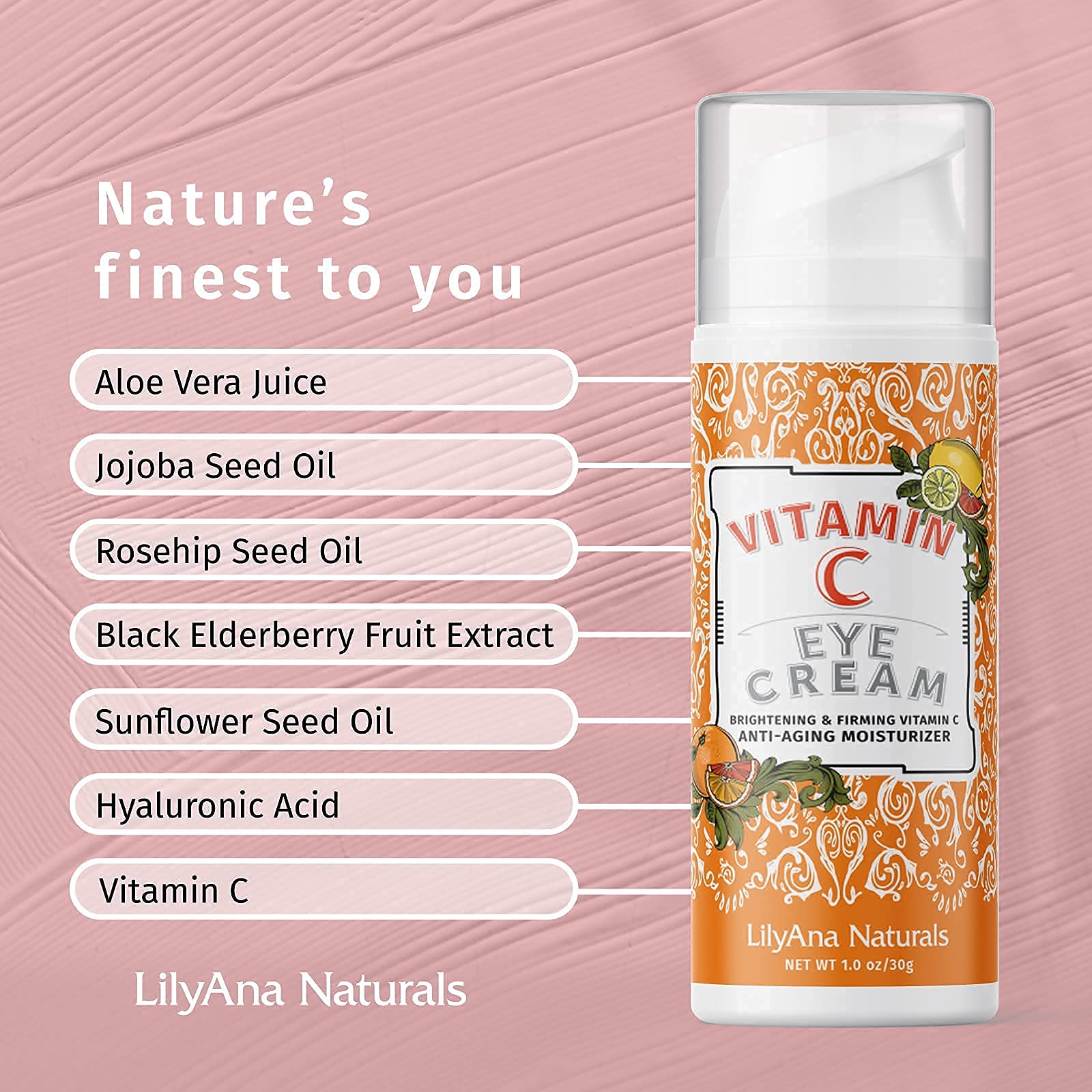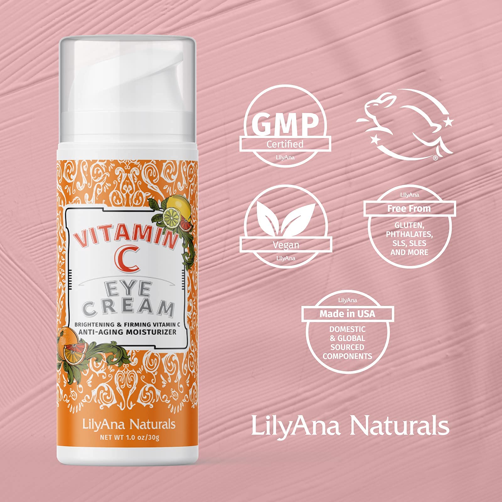 LilyAna Naturals Retinol Cream Moisturizer 1.7 Oz and Vitamin C Eye Cream 1 Oz Bundle - Anti-Aging Cream for your Eyes and Face Reduces Dark Circles and Puffiness, Fine Lines, Wrinkles and Age Spots