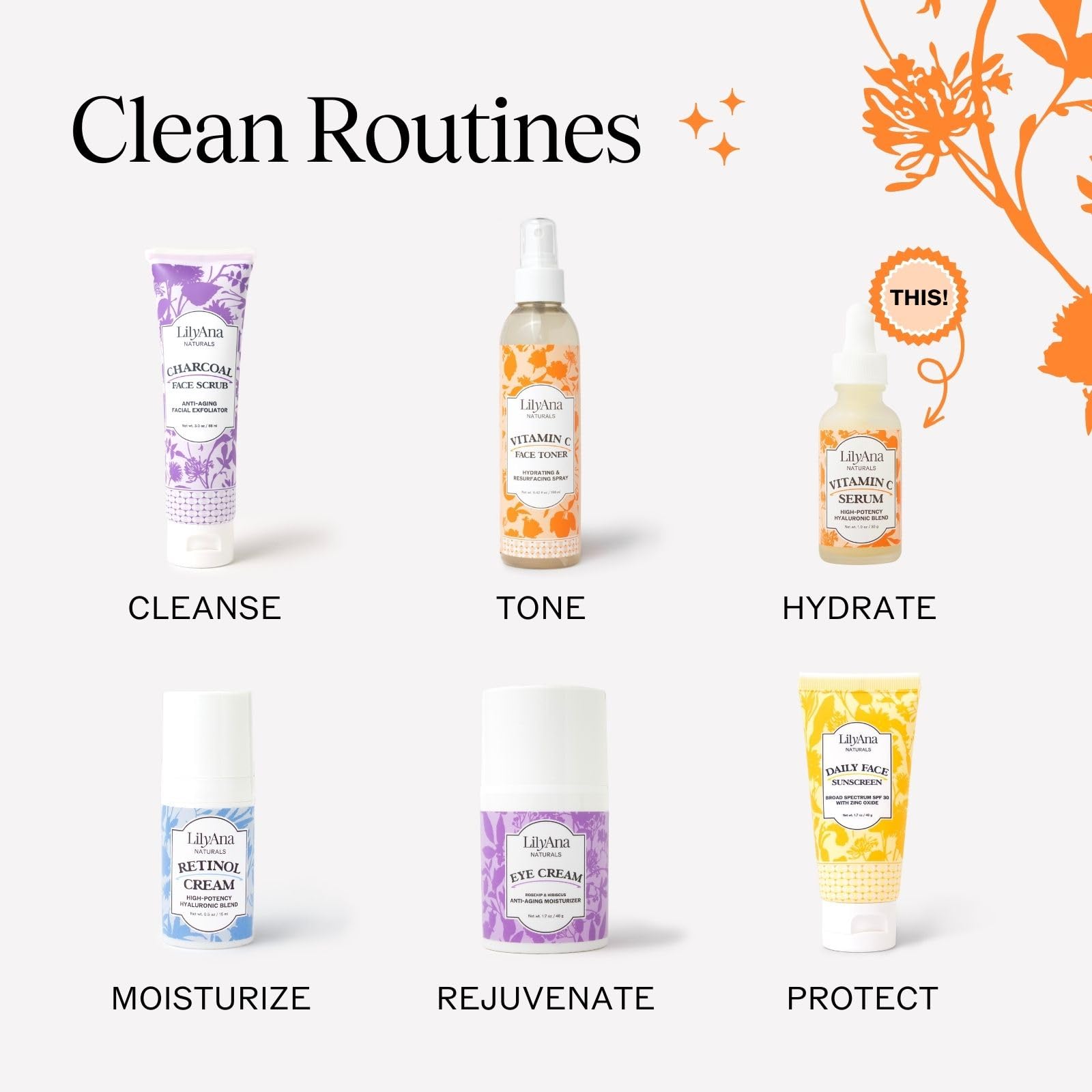 LilyAna Naturals Vitamin C Serum for Face with Hyaluronic Acid and Vitamin E, Anti Aging Serum, Reduces Age Spots and Sun Damage, Promotes Collagen and Elastin (1oz)