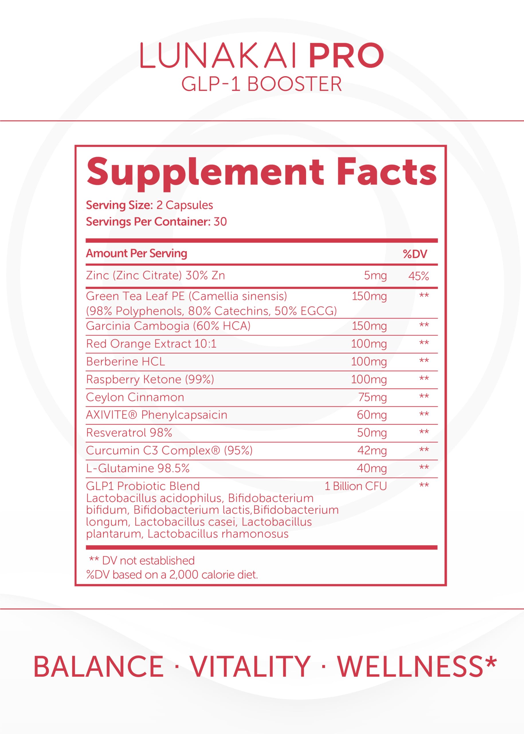 Lunakai PRO USA Made GLP-1 Supplement - Natural GLP 1 Booster with Probiotics & Resveratrol – Supports Weight Management, Cravings & Metabolism, 60ct