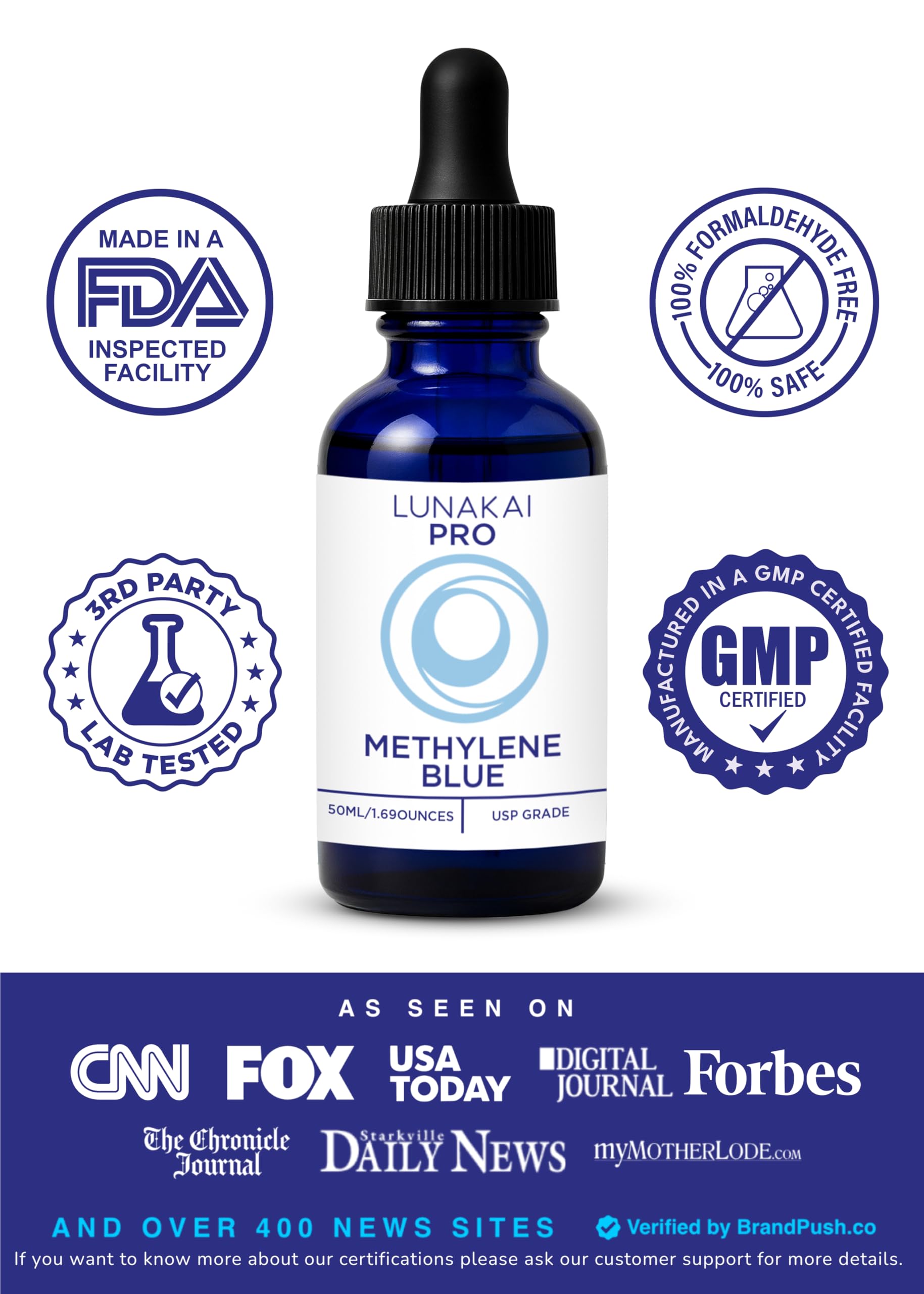 Lunakai PRO USA Made Methylene Blue Pharmaceutical Grade – 99.99% Pure USP Grade 1% Methylene Blue Drops for Humans – Cognitive & Focus Support Supplement