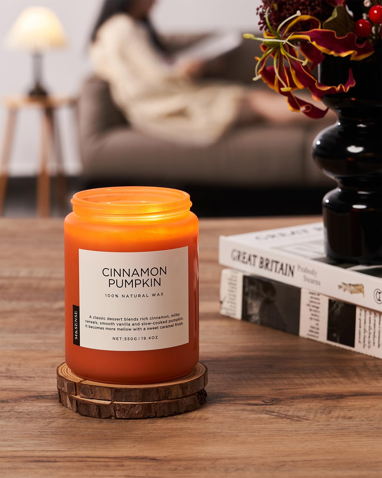 M&SENSE Cinnamon Pumpkin Fall Scented Candles, 19.4oz Soy Natural Candles 110 Hours Long Lasting Slow Burning Halloween Autumn Candle Gifts for Home Decor