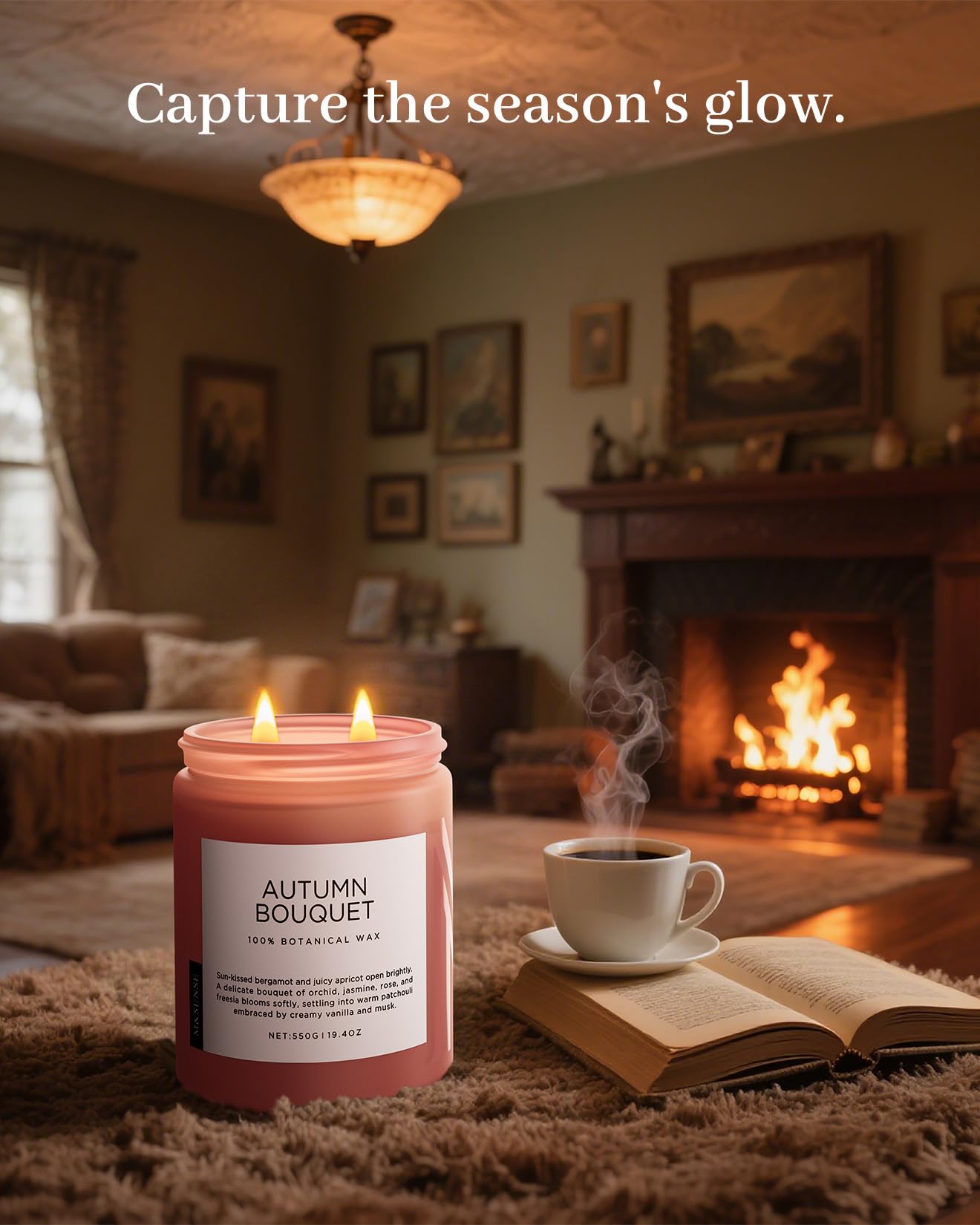 M&SENSE Fall Candle Autumn Flower Scented, Large 19.4oz Natural Soy Wax 110 Hours Burn Time Clean Non Toxic Candle Classic 2 Wicks Gifts