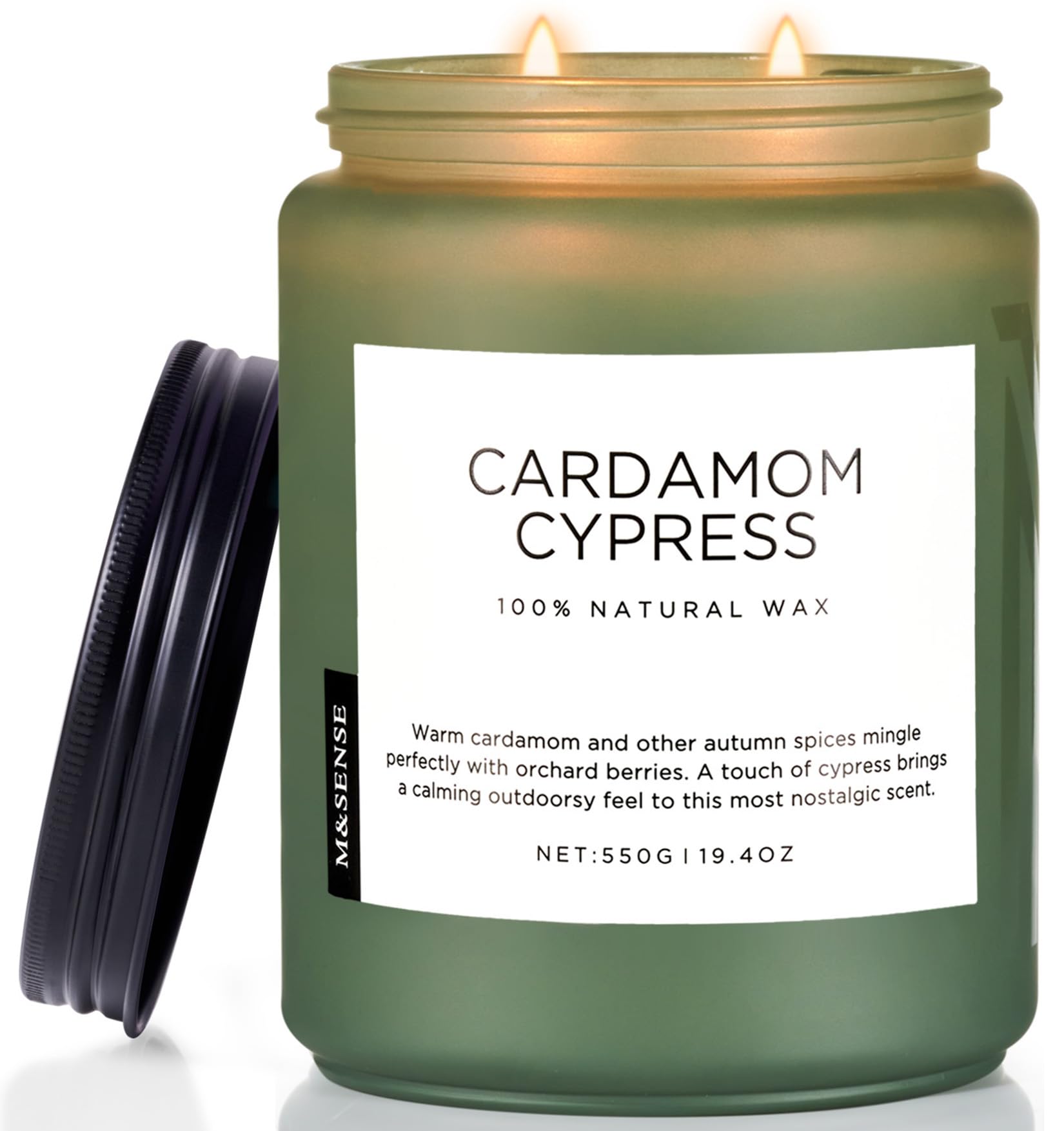 M&SENSE Spice Cardamom Cypress Large Soy Candles for Home Scented 2 Wick Large Soy Natural Candles 19.4oz 110 Hours Long Lasting Slow Burning, Christmas Holiday Woody Scented Winter Gifts